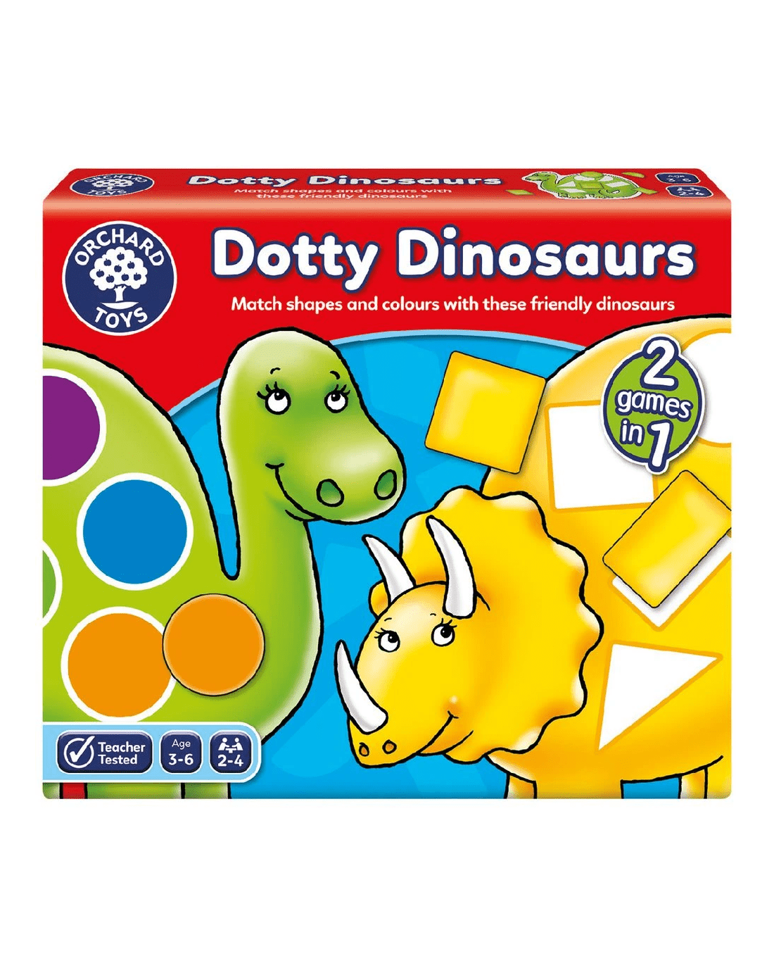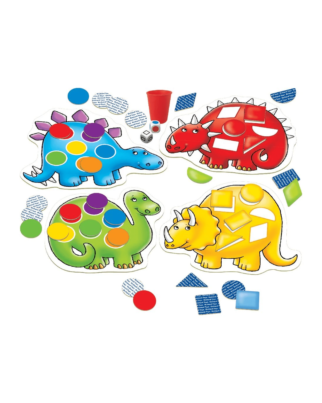 This Orchard Toys Dotty Dinosaurs Game makes learning about shapes and colours fun. The game has you rolling a dice to match shapes and colours on your dotty dinosaur.