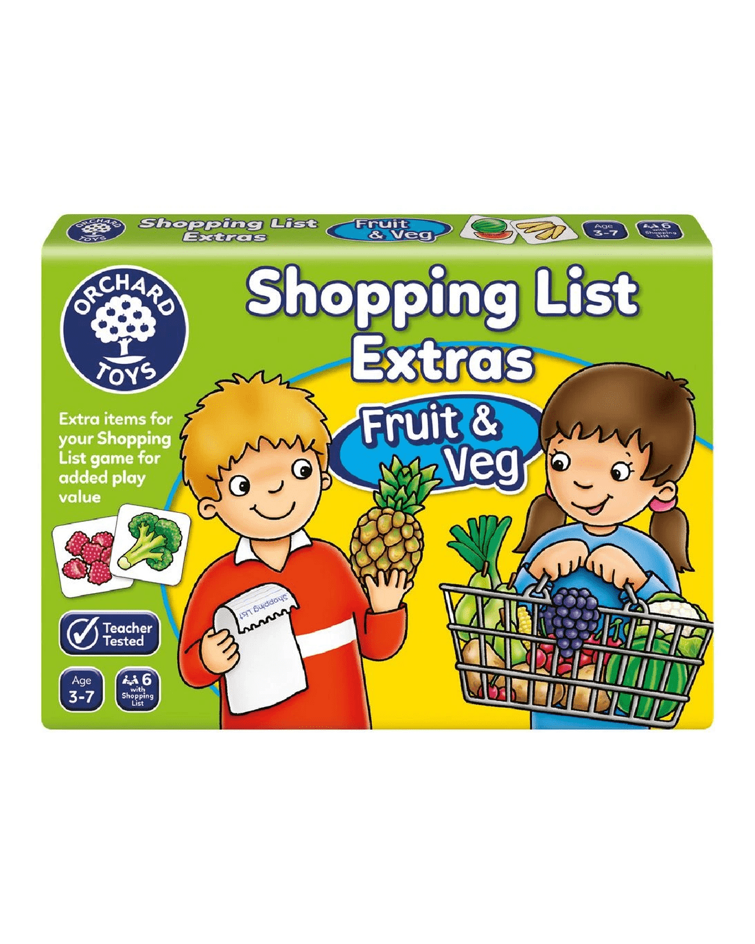 The Orchard Toys Shopping List Game is easy to play, simply fill your trolley with all of the items on your shopping list. This booster pack contains fruit and vegetable items so you can add many more familiar items to your trolley.