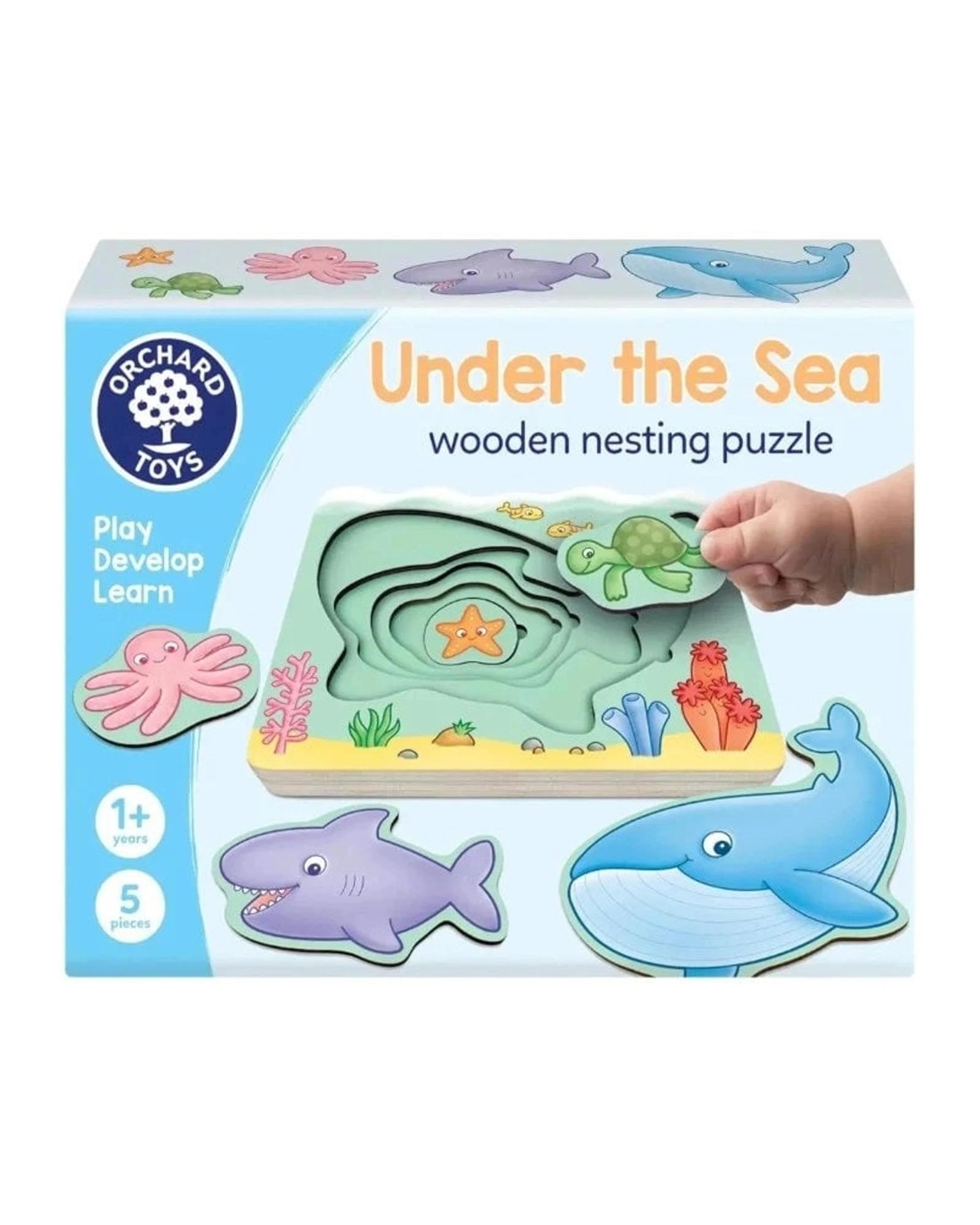 Explore the ocean with this Under the Sea Nesting Puzzle, a charming first puzzle set designed for children aged 1 and up. Featuring five beautifully illustrated sea creatures-a friendly whale, a curious shark, a playful octopus, a gentle turtle, and a bright starfish - this nesting puzzle provides a fun, hands-on way for little ones to explore size differentiation and build essential skills. As children place each piece in the correct order, they'll strengthen important fine motor skills like hand-eye coordination and develop early problem-solving abilities. Created with active, inquisitive young minds in mind, this nesting puzzle will provide countless hours of play, building confidence and curiosity every step of the way. Each durable piece is crafted to withstand active play and is perfectly sized for small hands. As children match each piece, they'll gain confidence and enjoy engaging, independent learning. Our Under the Sea Nesting Puzzle is a delightful introduction to puzzles that combines learning with imaginative ocean-themed fun. Ages: 1+
