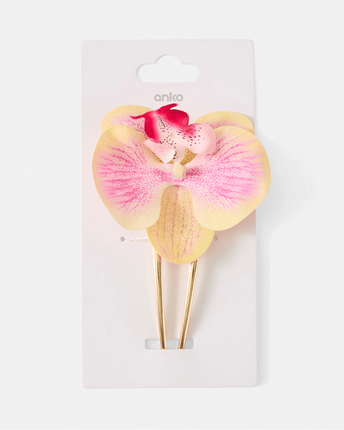 This yellow Orchid French Hair Pin adds a touch of elegance to any hairstyle. Featuring a delicate orchid design, it is perfect for weddings, special events or elevating everyday looks.
