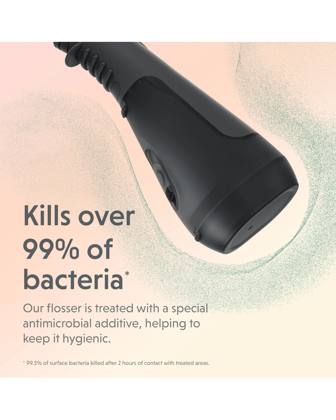 Designed to take your oral care routine to the next level - our stylish water flosser is designed to remove more plaque than brushing alone. Expertly engineered to reach the 30% of tooth surfaces that toothbrushing can miss, helping to remove more bacteria and plaque build-up, keeping your teeth and gums healthier and your smile brighter. Designed and recommended by thousands of dental professionals.