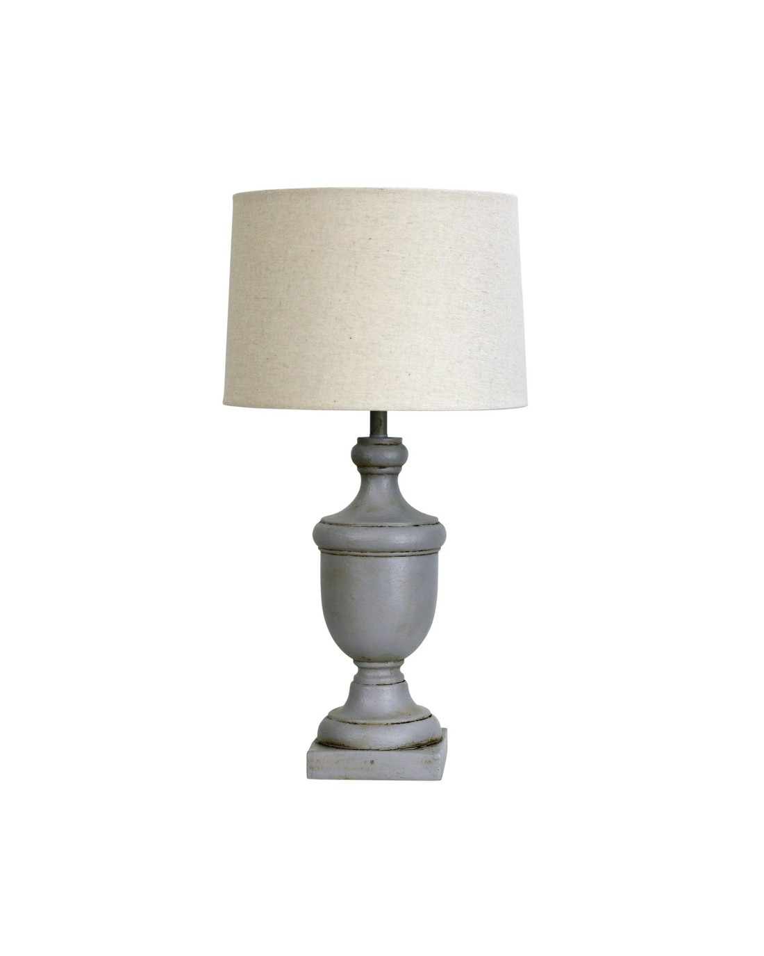 Stafford table lamp in concrete-tone resin with off-white natural linen shade. At 52cm tall, it's a statement piece for any room. On/off switch is located on the cord.