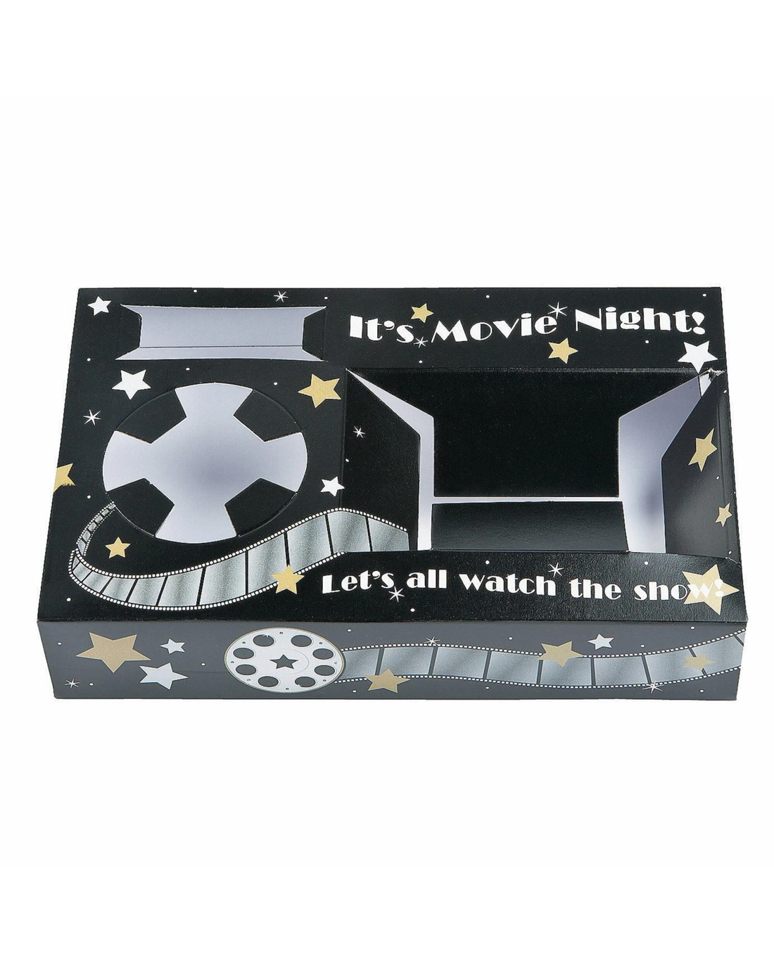 It's show time! Pull up a seat and get comfortable at your Movie Night themed party with these clever snack trays! With sections for a popcorn box, drink cup, and a sweet treat, these trays are sure to be a hit with your guests!