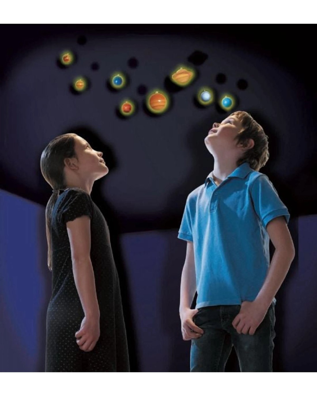 Bring space into your bedroom with this glowing model solar system. Use the clear string to hang eight planets from your ceiling. Detailed on the packaging are the names of each planet so you can display them in their positions within the Solar System. This product is educational and makes a fantastic room decoration. By day the planets are bright, colourful and fun but then at night-time, when the lights go out, they produce a fantastic glowing display. Packaging and instructions are multi-lingual including English, French, German, Spanish, Dutch and Italian. The Original Glowstars Company was first formed in the nineties bringing Original paper Glowstars to the nation. No home was complete without a glowing night sky on bedroom walls and ceilings. Now The Original Glowstars Company brings, not just paper Glowstars, but a whole array of glow-in-the-dark items to make your home a fun, educational, “glowing” place to be. The Glow range includes Glow 3D and Cosmic Glow. Now that kids grow out of toys earlier and earlier, glow products appeal to kids into their tween and teen years. Ideal for pyjama parties and sleepovers. Even adults will love to decorate rooms with this beautiful home decor. Ages 6 +