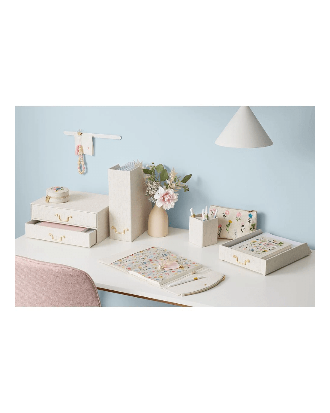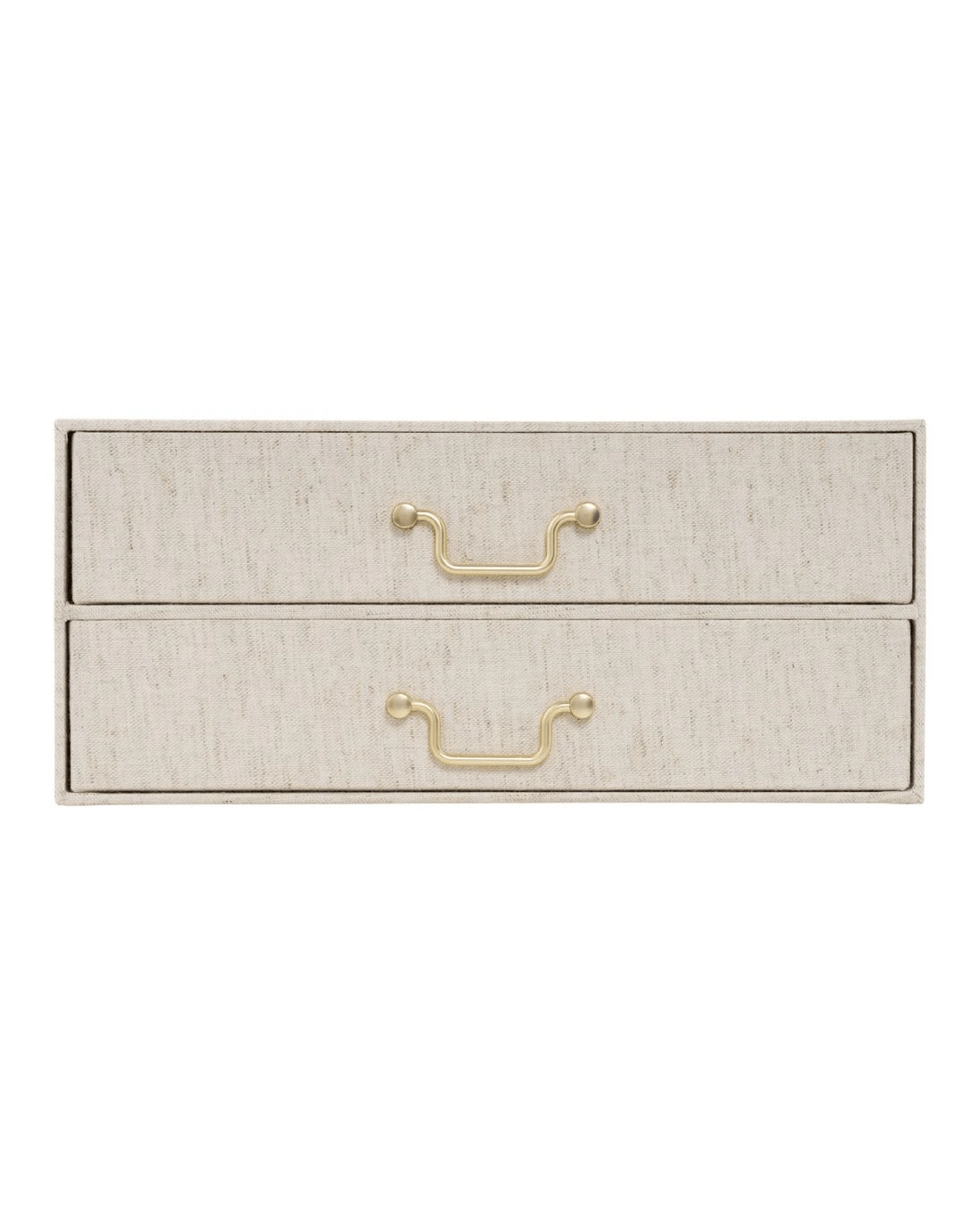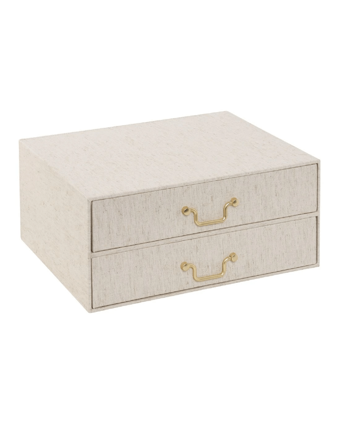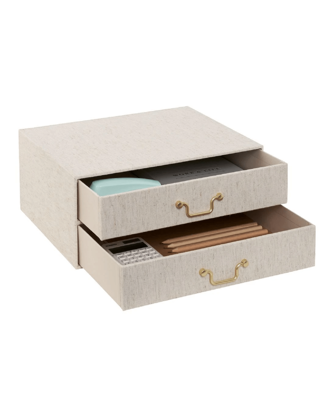 These Otto Natural Linen Look Drawers are a great way to keep your documents secure at your desk. It has 2 drawers for organising your files, cables and small stationery. Its natural linen design with gold handles is sure to complement any workspace.