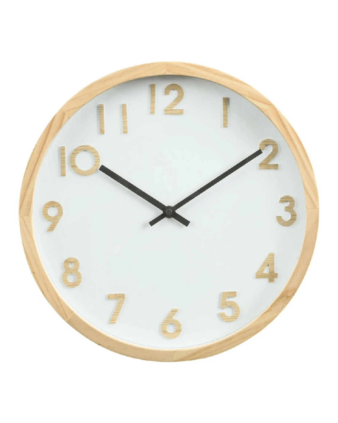 This Otto Wall Clock has a 30 cm diameter and is a wonderful decor piece, as well as helping you to stay on time. It has a natural wood frame with a white face.