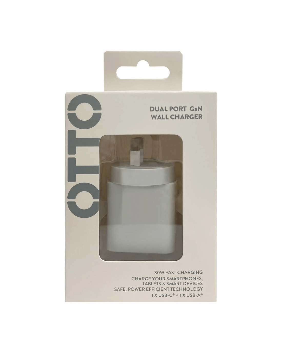 Sold by OfficeworksOtto 30W 2-Port USB-C + USB-A Wall Charger Pastel Grey