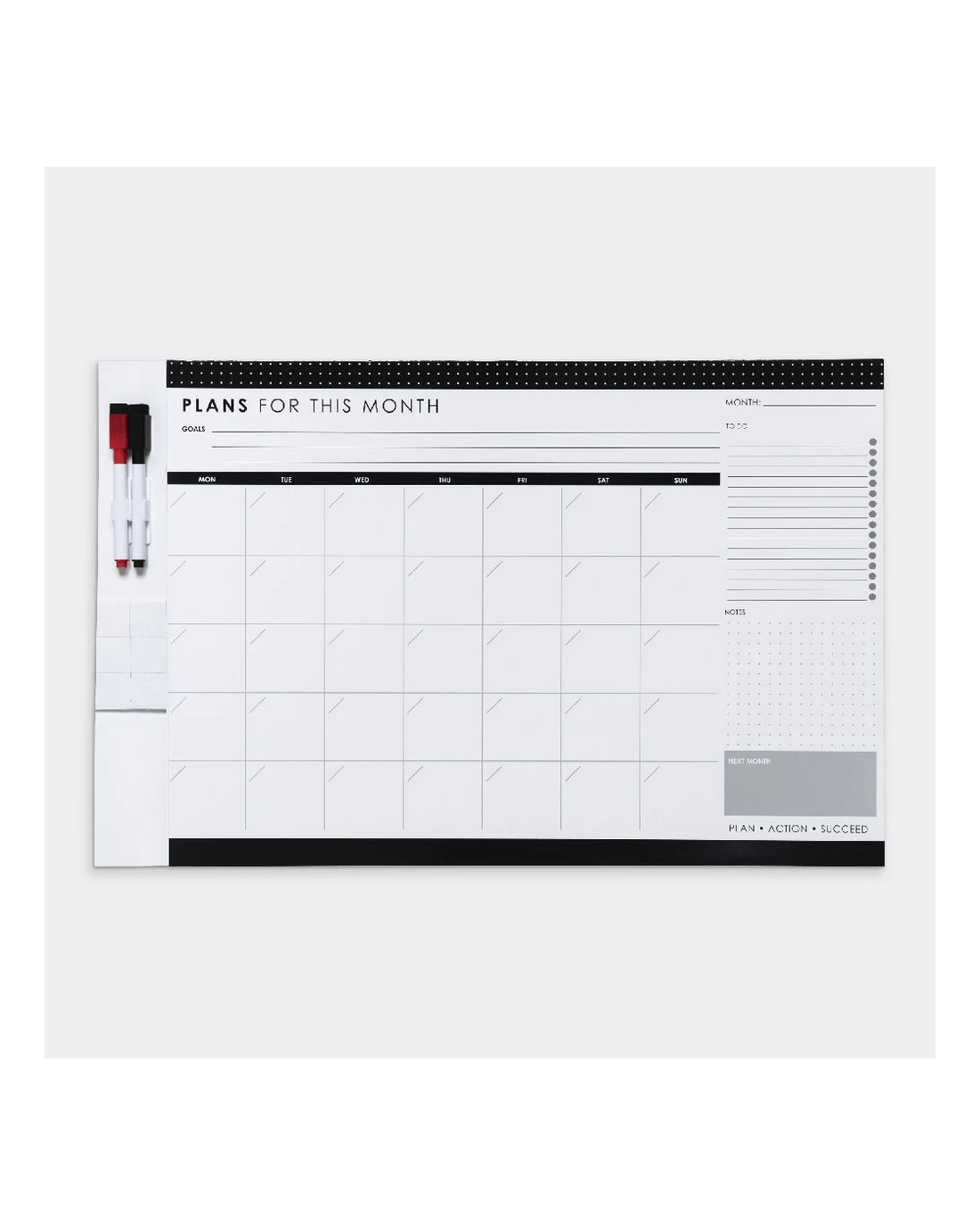 - This planner comes with a dry erase marker and surface so you can map out your month which ever way you want.