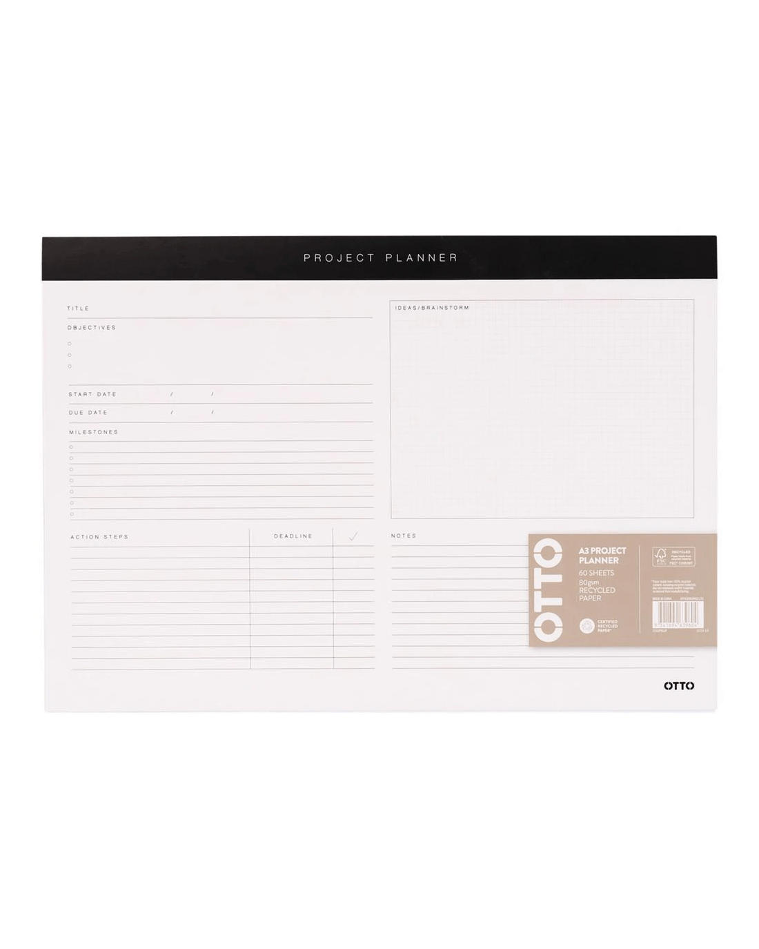 Keep track of all your upcoming tasks with the Otto Project Planner. It comes in an A3 size, providing plenty space to layout every facet of whatever it is you're working on.