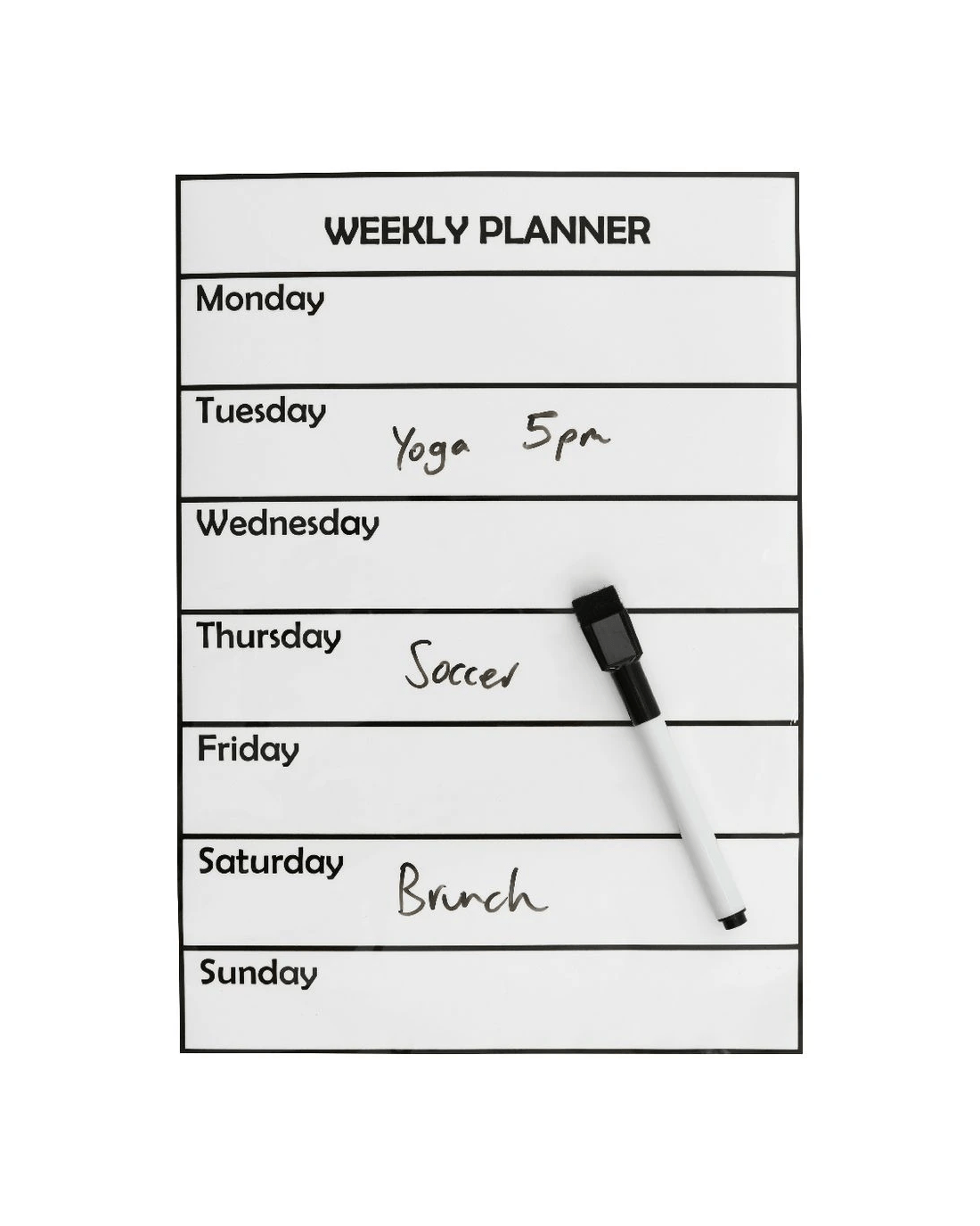 - This planner comes with a dry erase marker and surface so you can map out your week which ever way you want.