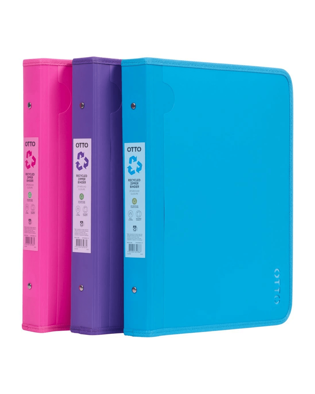 This Otto A4 2 D-Ring Zipper Binder is a handy tool for holding and transporting your papers in the classroom or the workplace. It features secure zip closure and can hold up to 200 A4-sized sheets. Plus, it is made from Post Consumable Recycled Polypropylene, making it an environmentally conscious choice of binder.