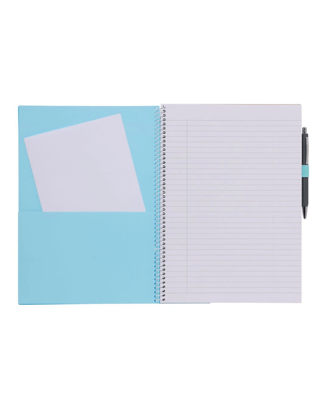 - This notebook has a blue cover.