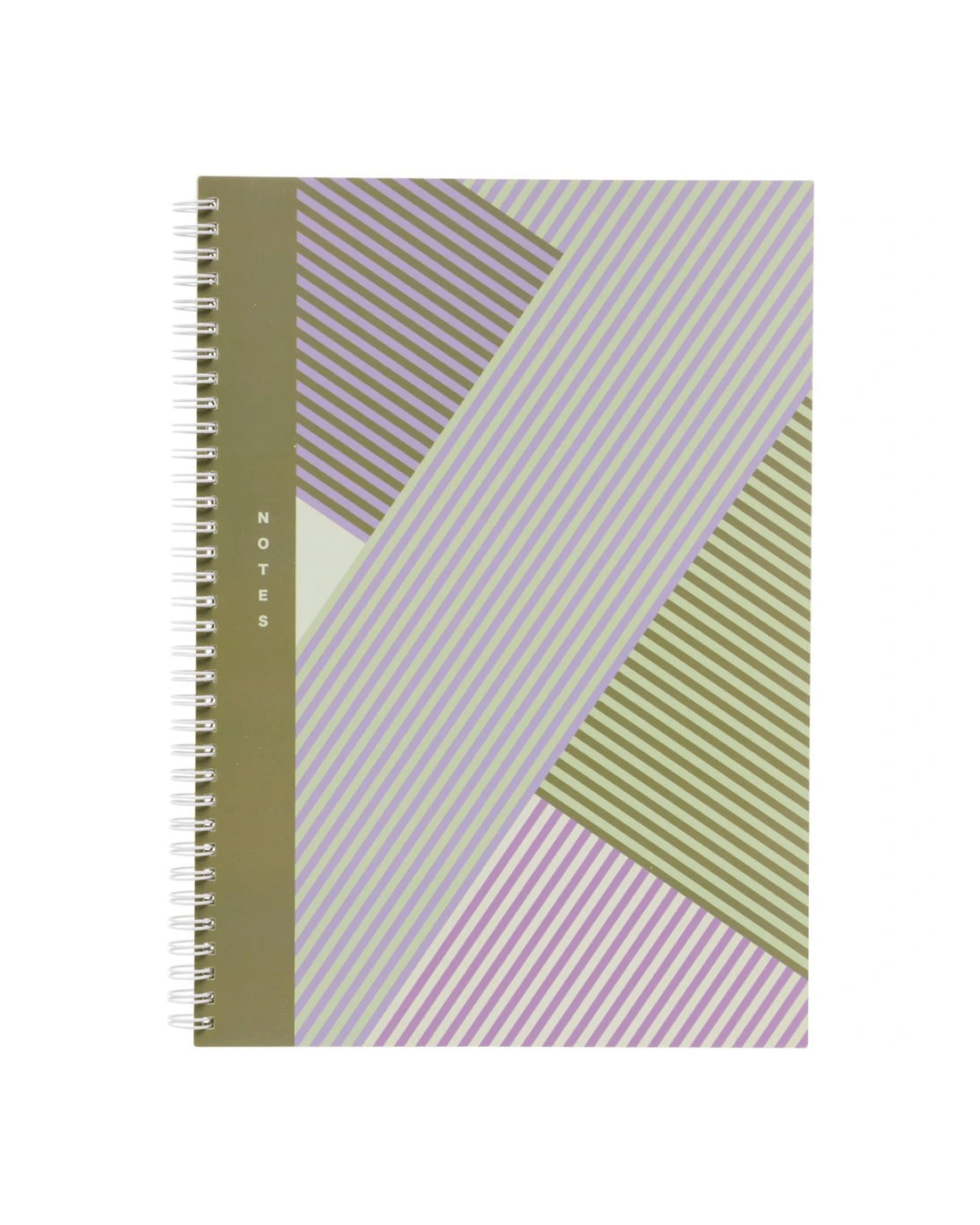 This Otto A5 Notebook contains 200 pages in an easy-to-use spiral bound format. The pages are ruled and to keep your writing neat and consistent. The cover features a bright, striped green design.