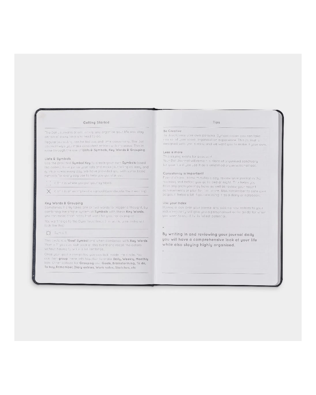 - The feint dot grid pages allow you write, sketch, make lists and more.