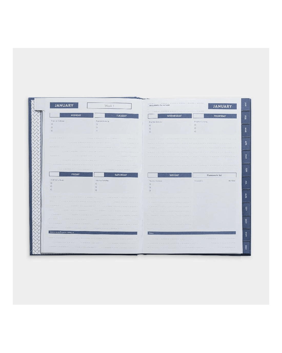 This Otto Undated Planner is a great tool for planning deadlines and goals for your study habits. It is undated so you can start using it anytime, while the attached ribbon allows you to not lose your page.