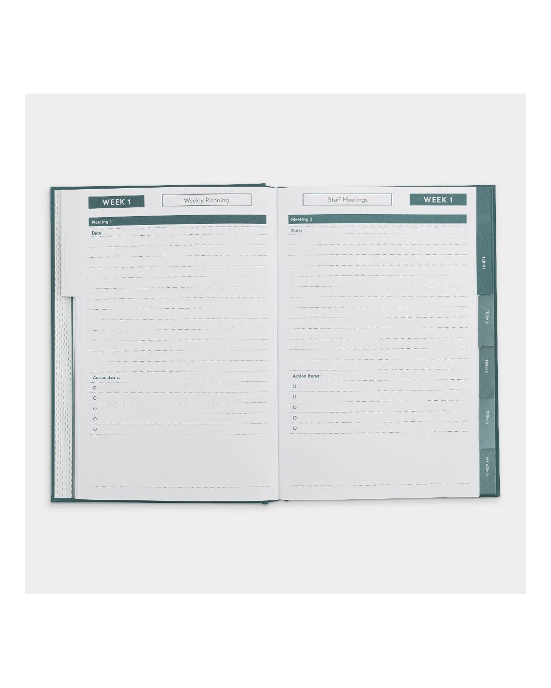 This Otto Teachers Planner is a companion throughout the school year, motivating you to plan engaging lessons and stay on top of your workload. There's dedicated space to plan out your weeks, alongside dedicated space to plan out your classes, your goals, and to bring them to life.