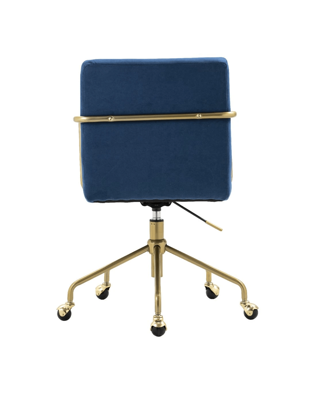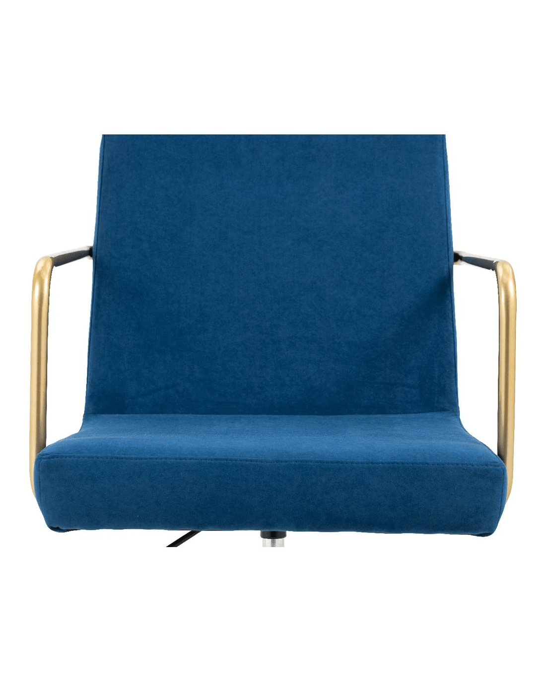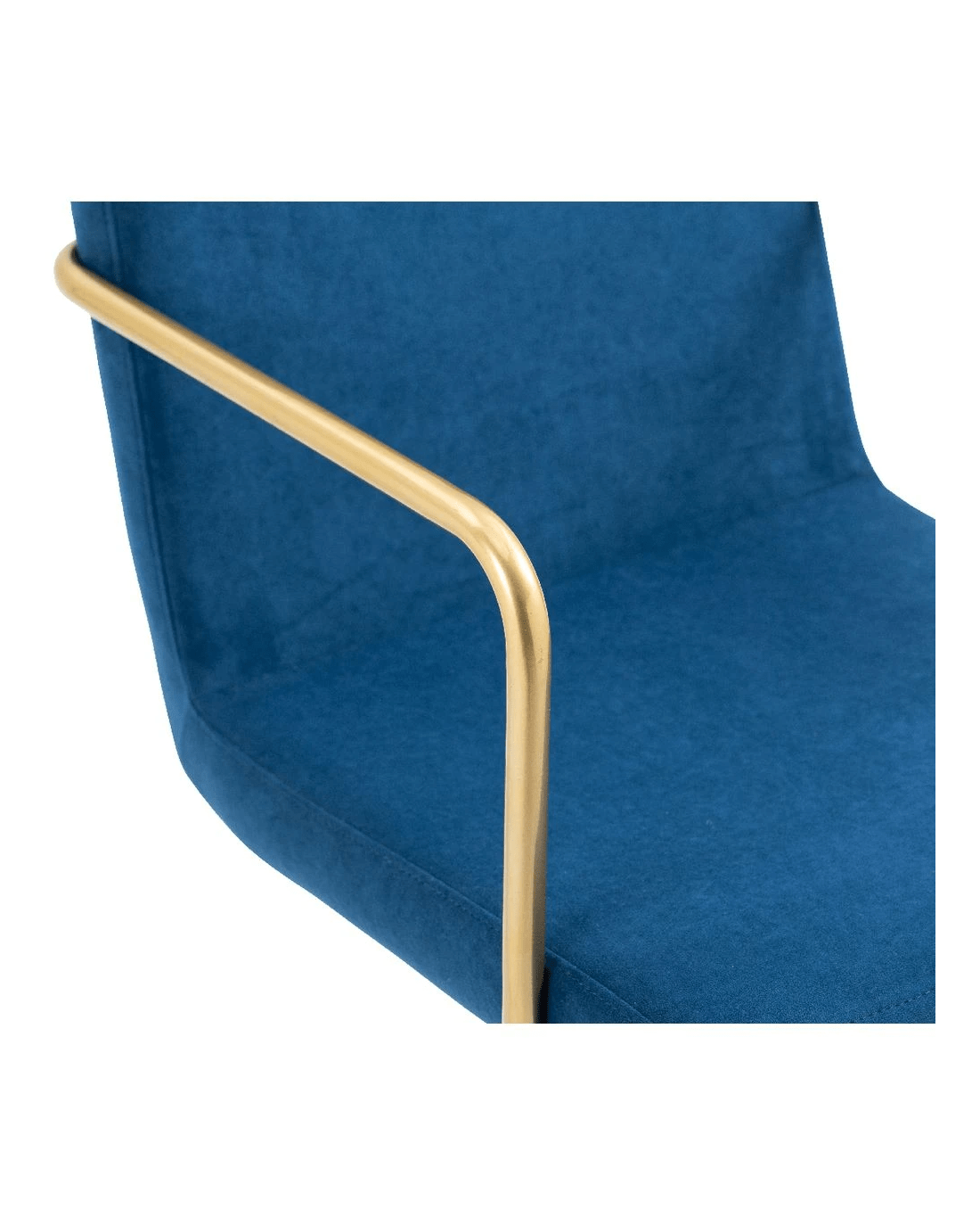 - It comes in a velvet blue colourway with gold finished arms and base.