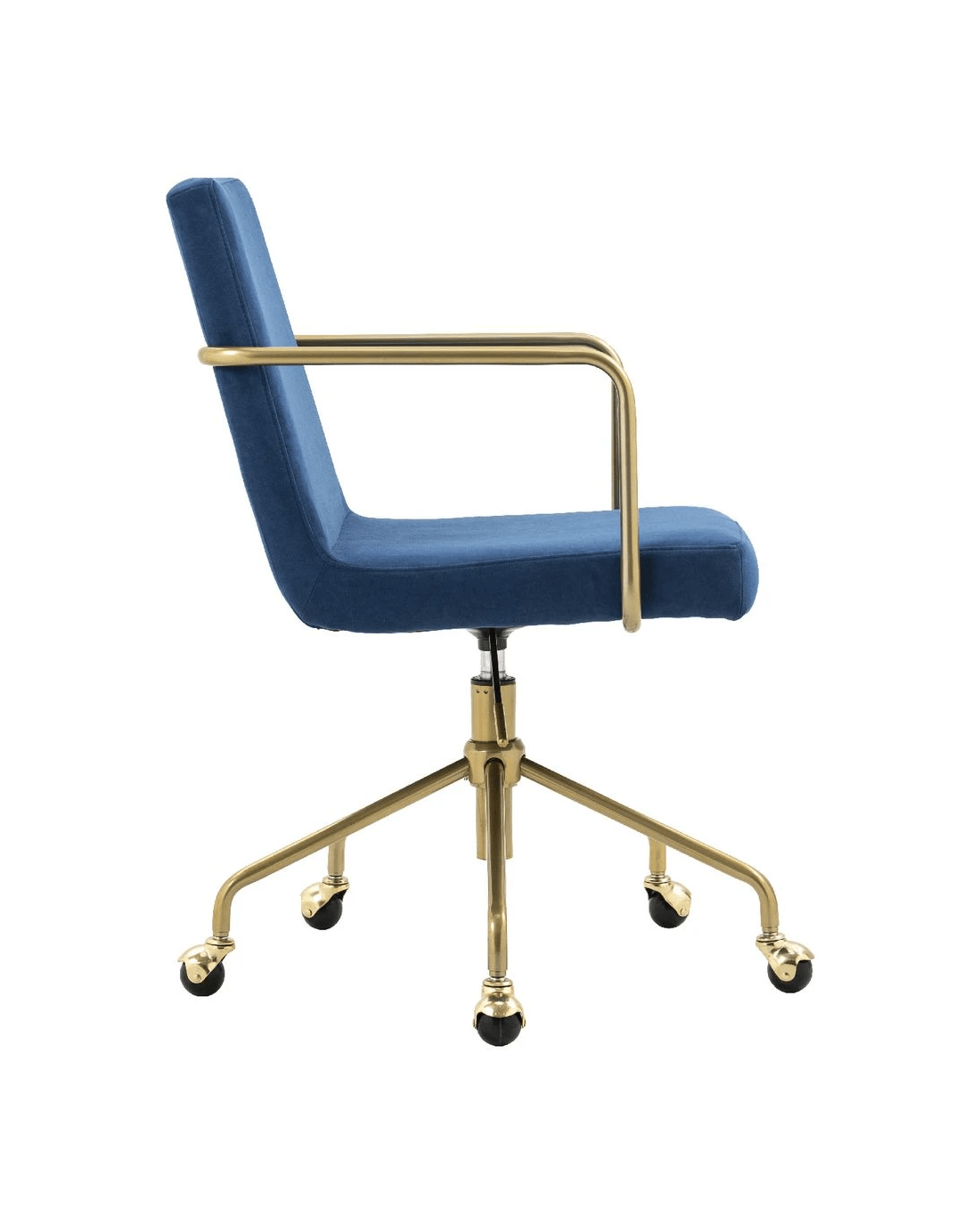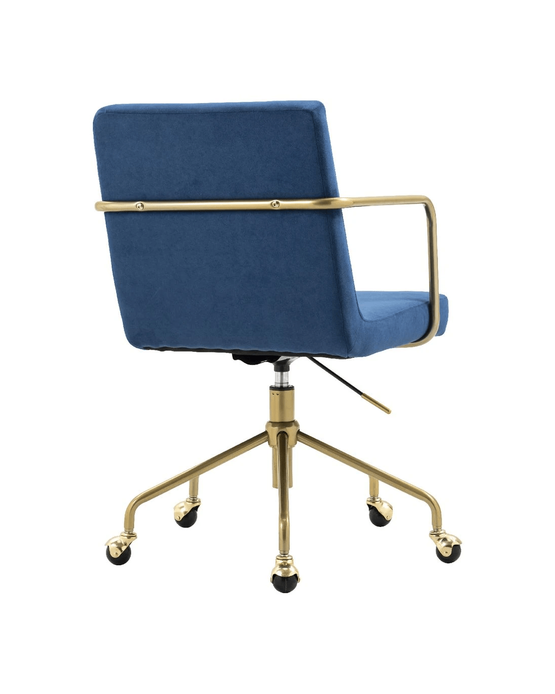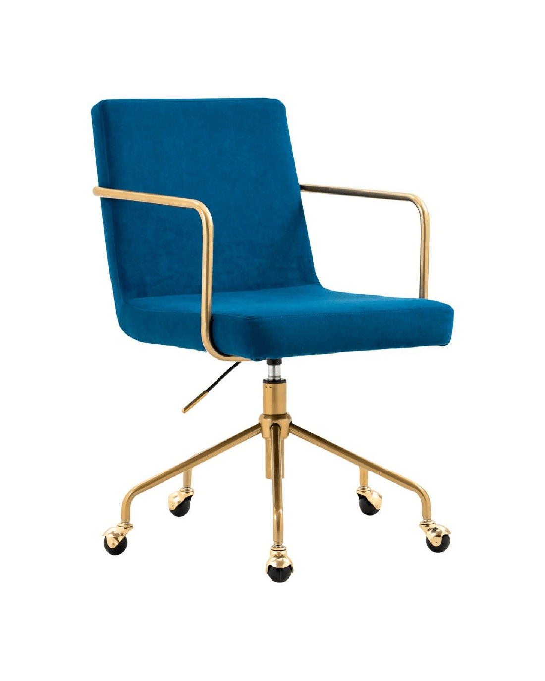This Otto Brumunddal Chair brings a premium style to any home office. A curved back and padded seat, both in velvet fabric, provide comfort while a gold-finished star base and armrests imbue a sense of luxury. Its 360 degree swivel and gas lift height adjustment mean you can easily turn to face anyone you need to speak to.