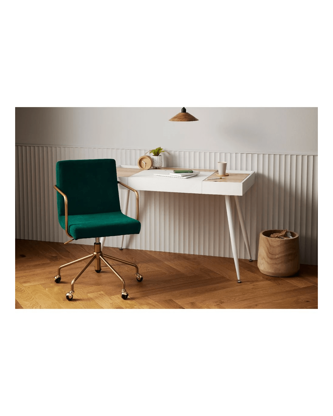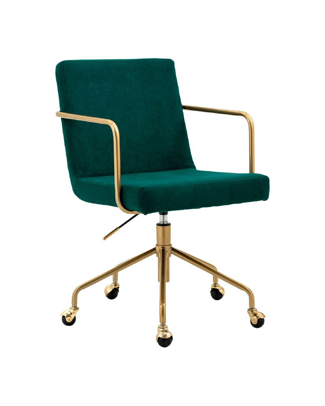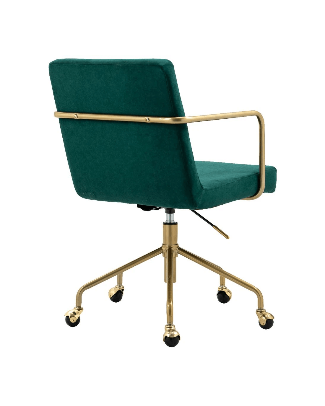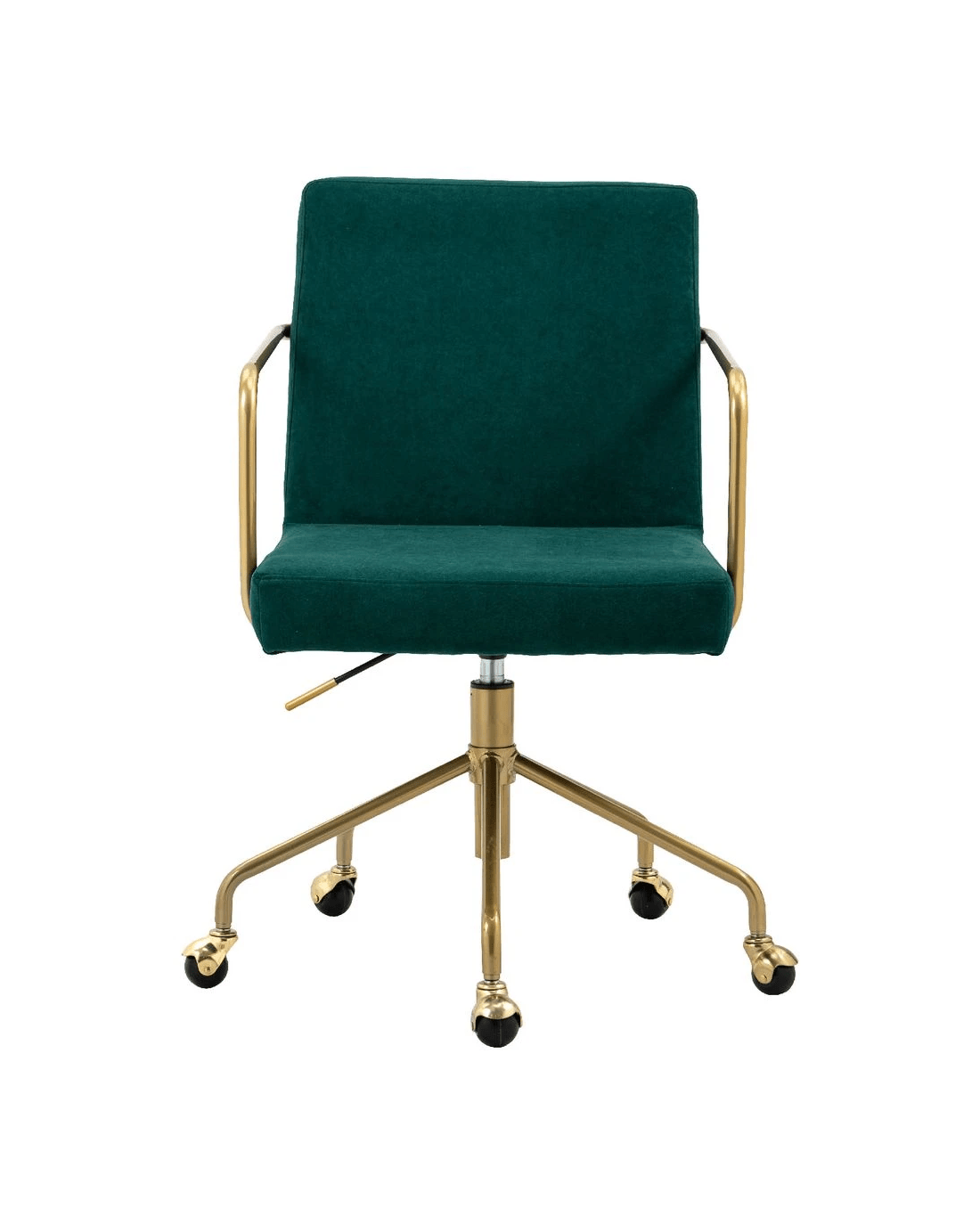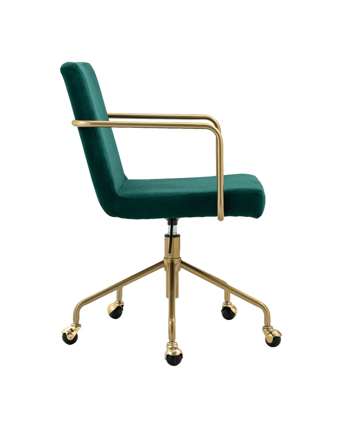 This Otto Brumunddal Chair brings a premium style to any home office. A curved back and padded seat, both in velvet fabric, provide comfort while a gold-finished star base and armrests imbue a sense of luxury. Its 360 degree swivel and gas lift height adjustment mean you can easily turn to face anyone you need to speak to.