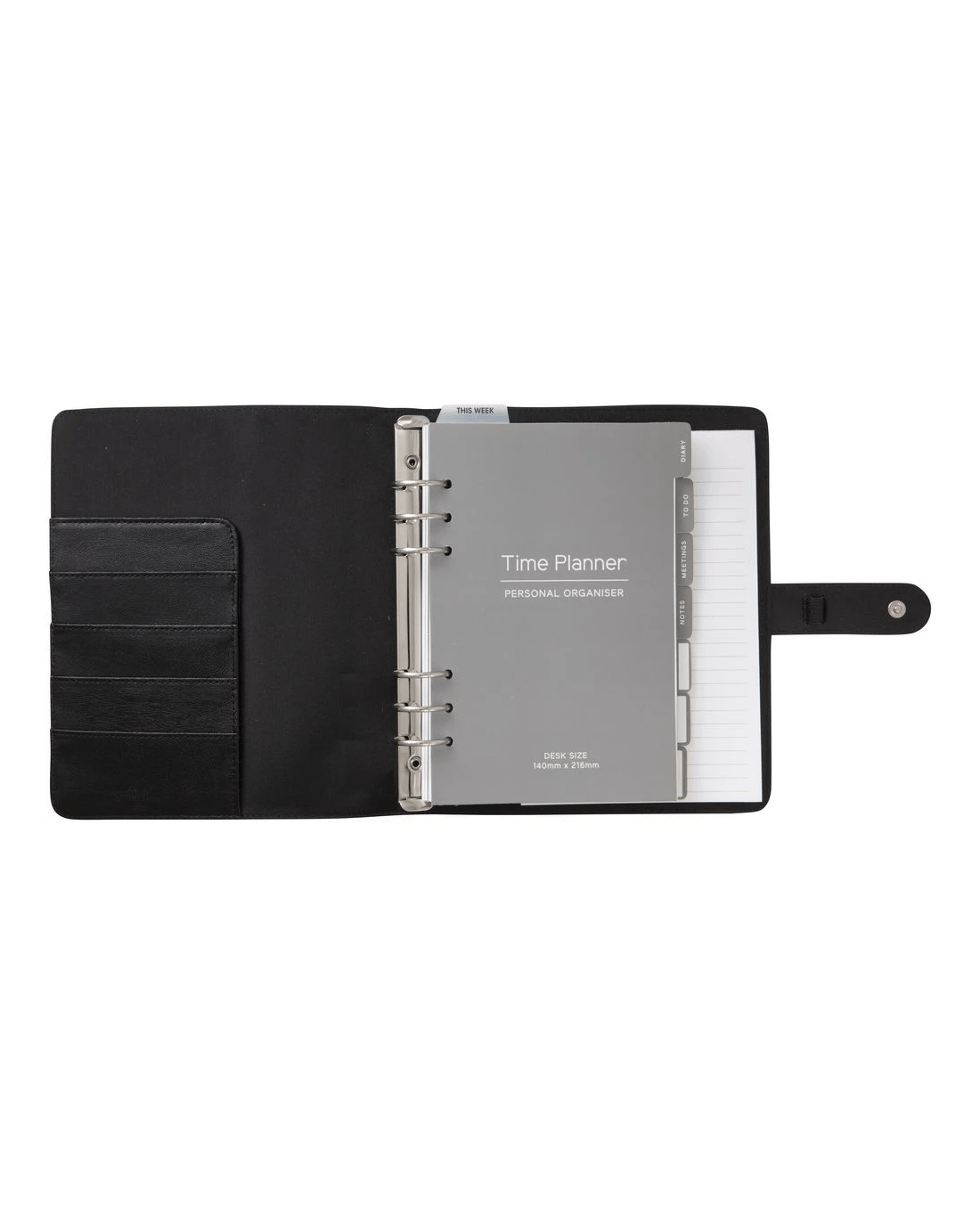 - This organiser has a black cover design.
