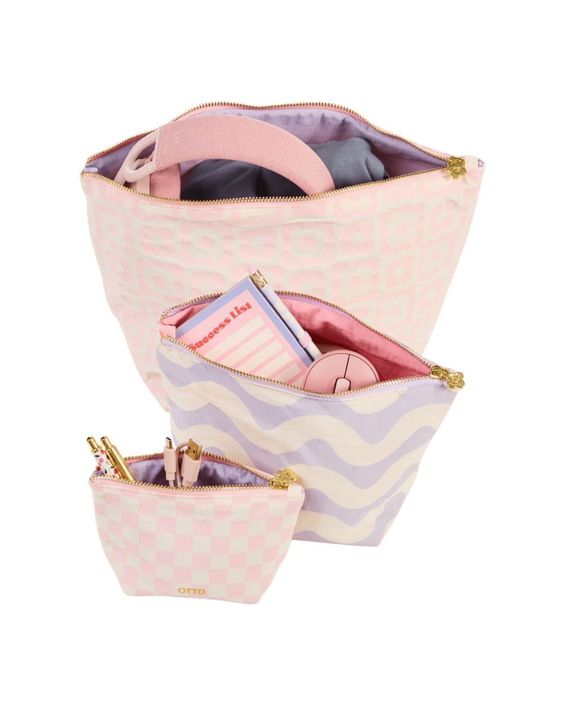Keep your accessories organised in this Otto Eclectic Pop Pouches. They're constructed from a durable nylon protecting things like your phone chargers inside. This is a 3 pack, so you can organise your accessories and store them away for your next strip.