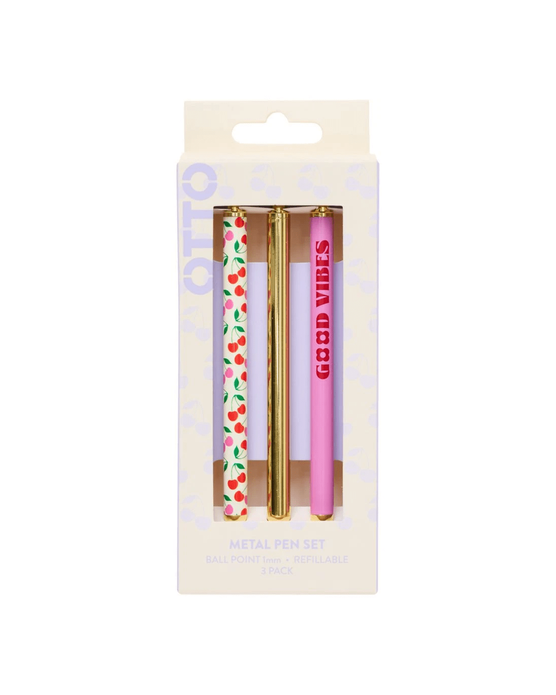 These Otto Pens come in a pack of 3 and feature an oil-based ink for a smooth flow. They produce black ink and have a 1 mm nib. These pens feature a cheery Eclectic Pop metal design.