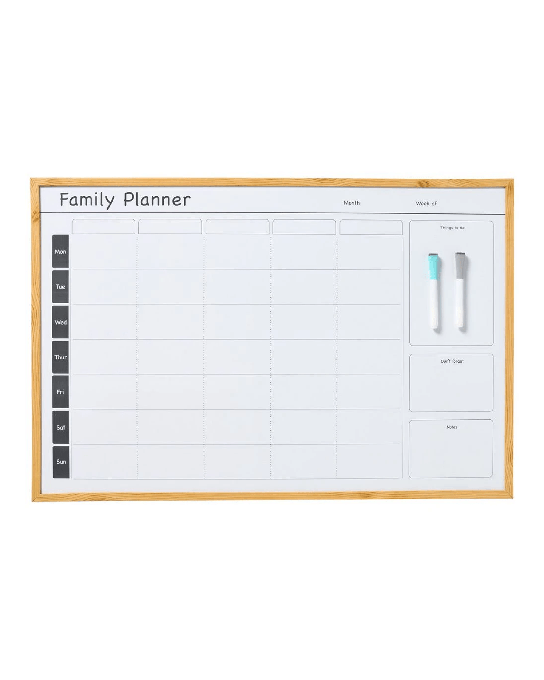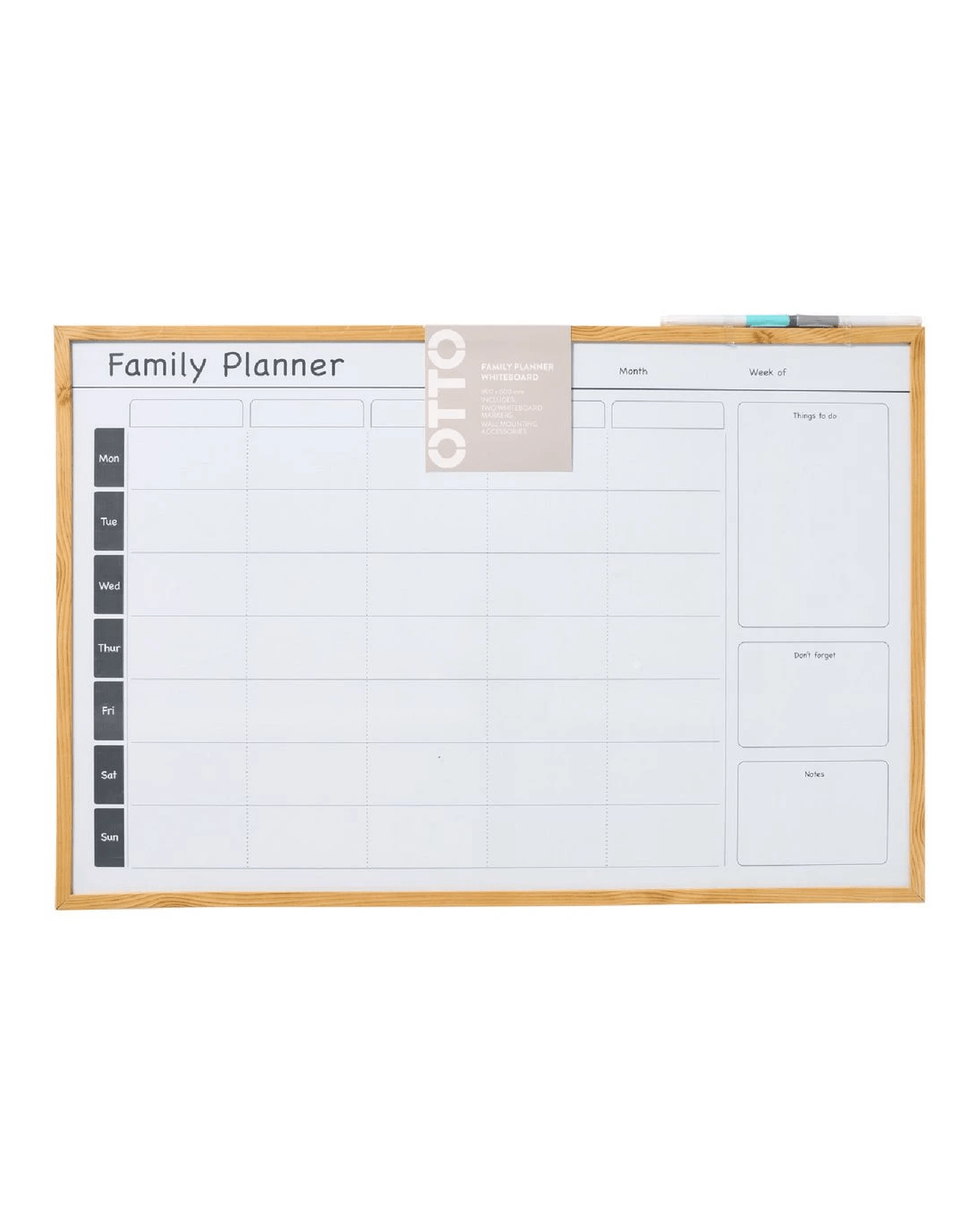This Otto Family Whiteboard Planner has everything you need to plan a week's worth of activities and important events for the whole family. It has spaces for each family member on each day of the week as well as room for a to-do list, reminders and personal notes. And when the week is over, wipe it clean and plan the next one.
