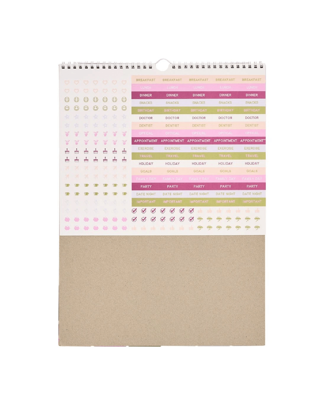 - This calendar has a classic double wire binding so that you're able to store your writing tools in there.