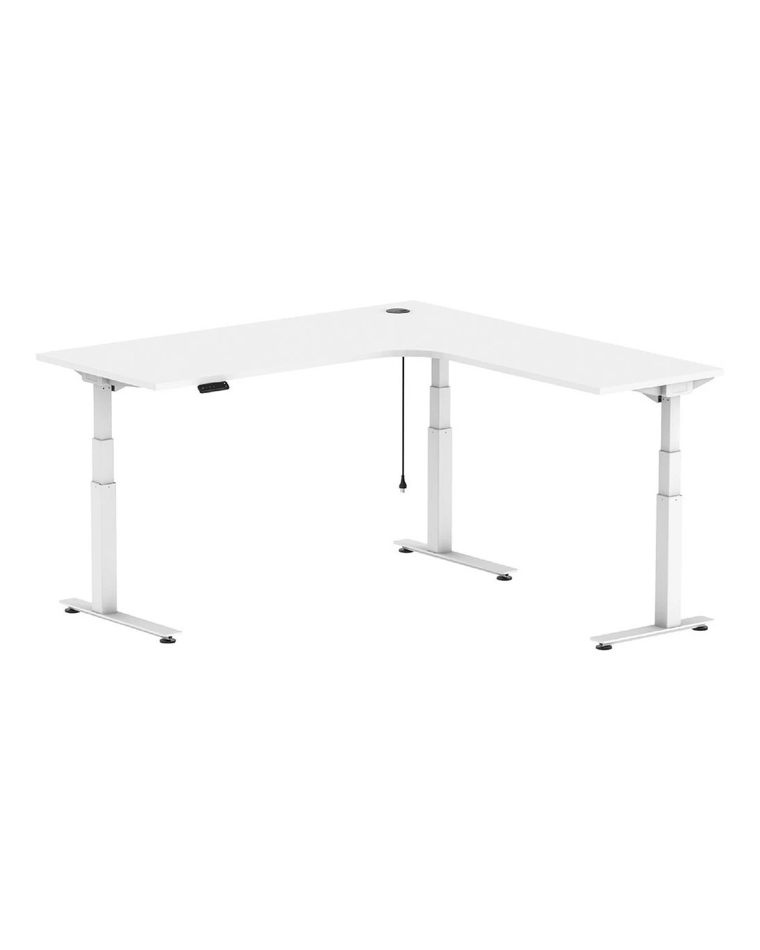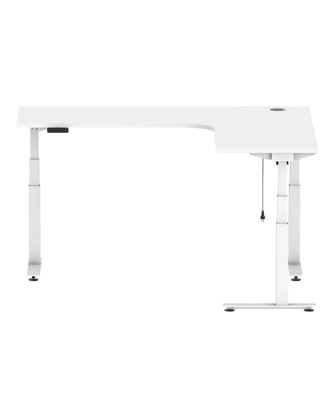 - This radius corner workstation features dual motors in the desk and a third motor in the return desk section working simultaneously on each frame leg.