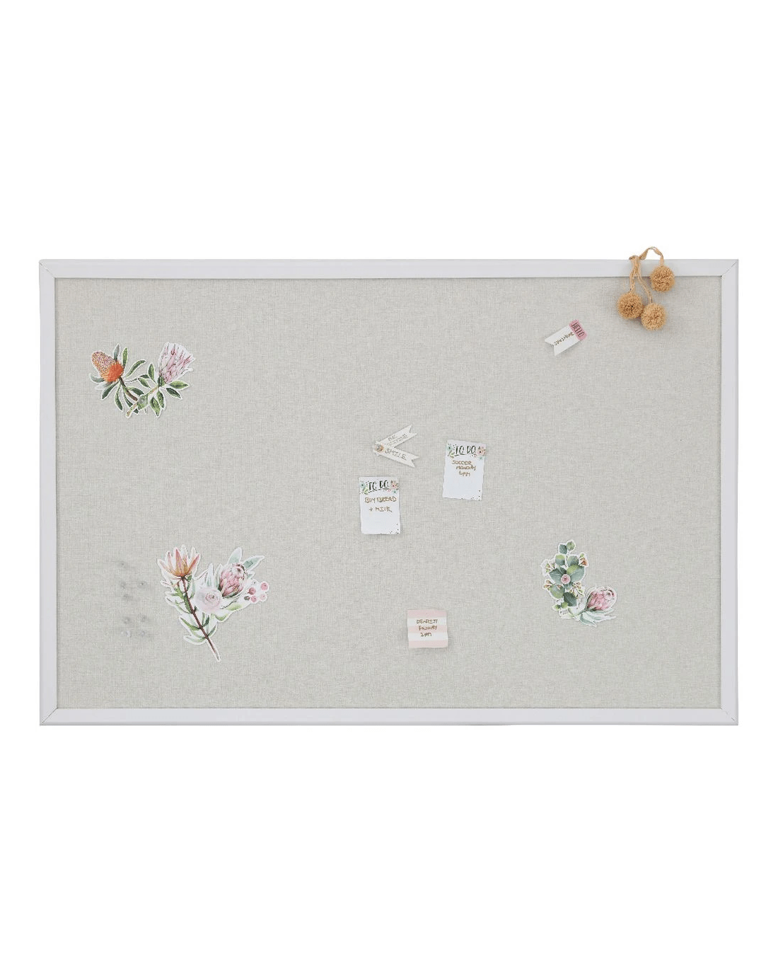 This Otto Linen Board has a pinnable surface so you can display memos, lists, photos and more. It's surrounded by a white-coloured MDF frame and comes with wall mounting accessories for your convenience.