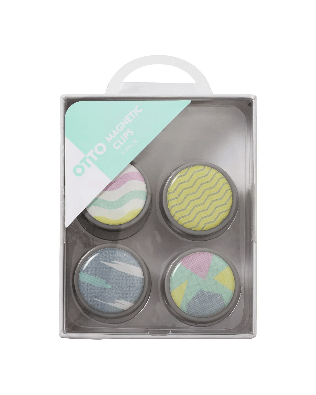 This 4 pack of Otto Magnetic Clips are a great option for attaching your artwork, shopping lists, photographs, and notes to the fridge. With a strong-hold magnetic backing, they easily attach to your fridge or other magnetic surface, while the pastel design gives your fridge a nice look.
