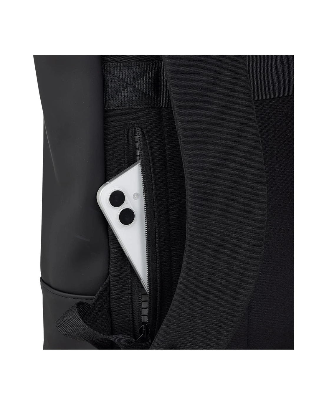 - A hidden phone pocket on the back of the bag keeps items secure.