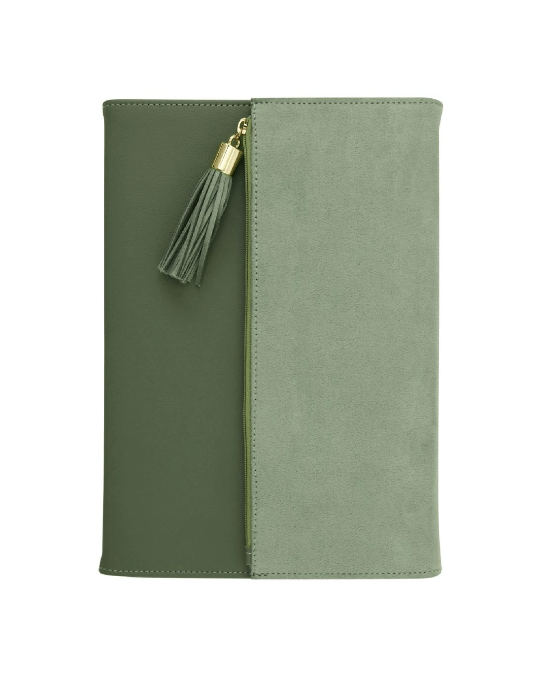- The cover has a suede-looking finish in a green colour.