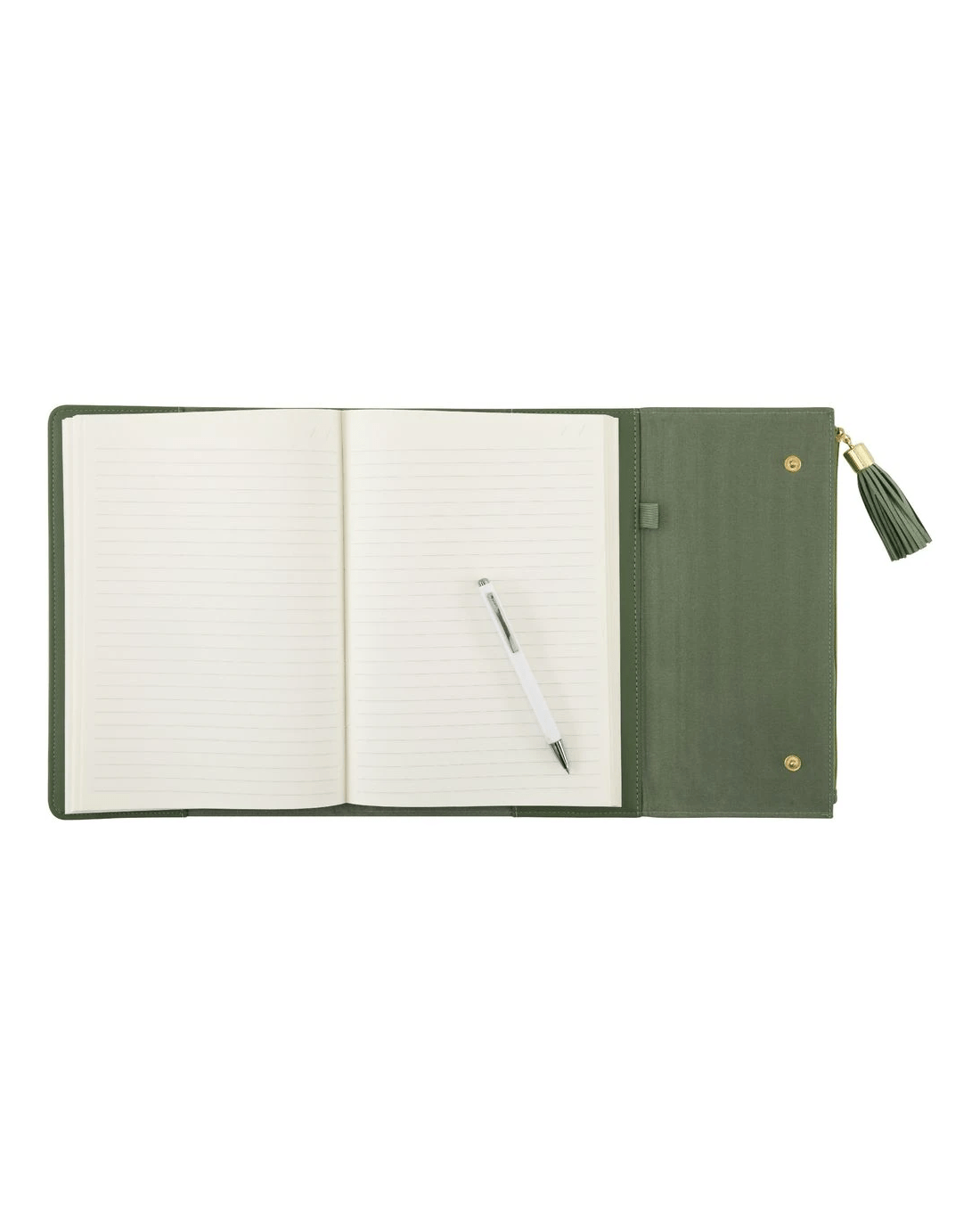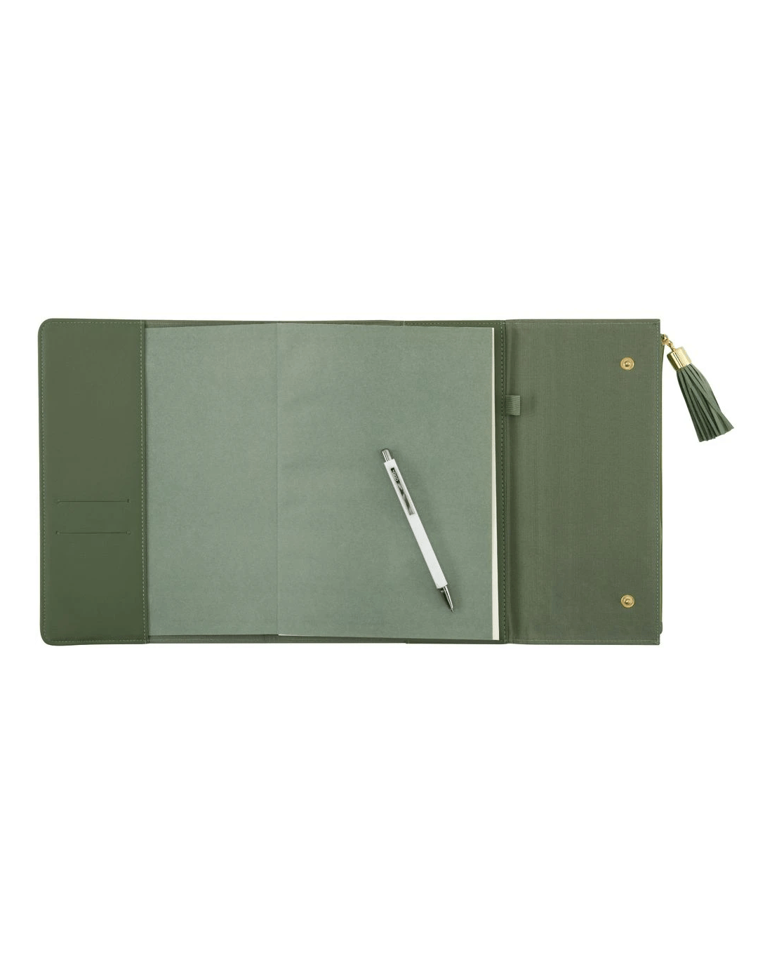 - The trifold design is complete with a press stud closure, keeping your words safe inside.