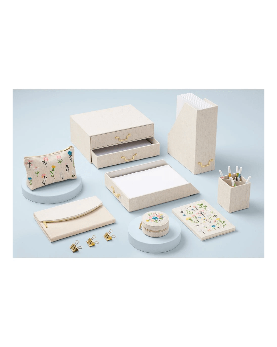 - It comes in a natural linen look design.