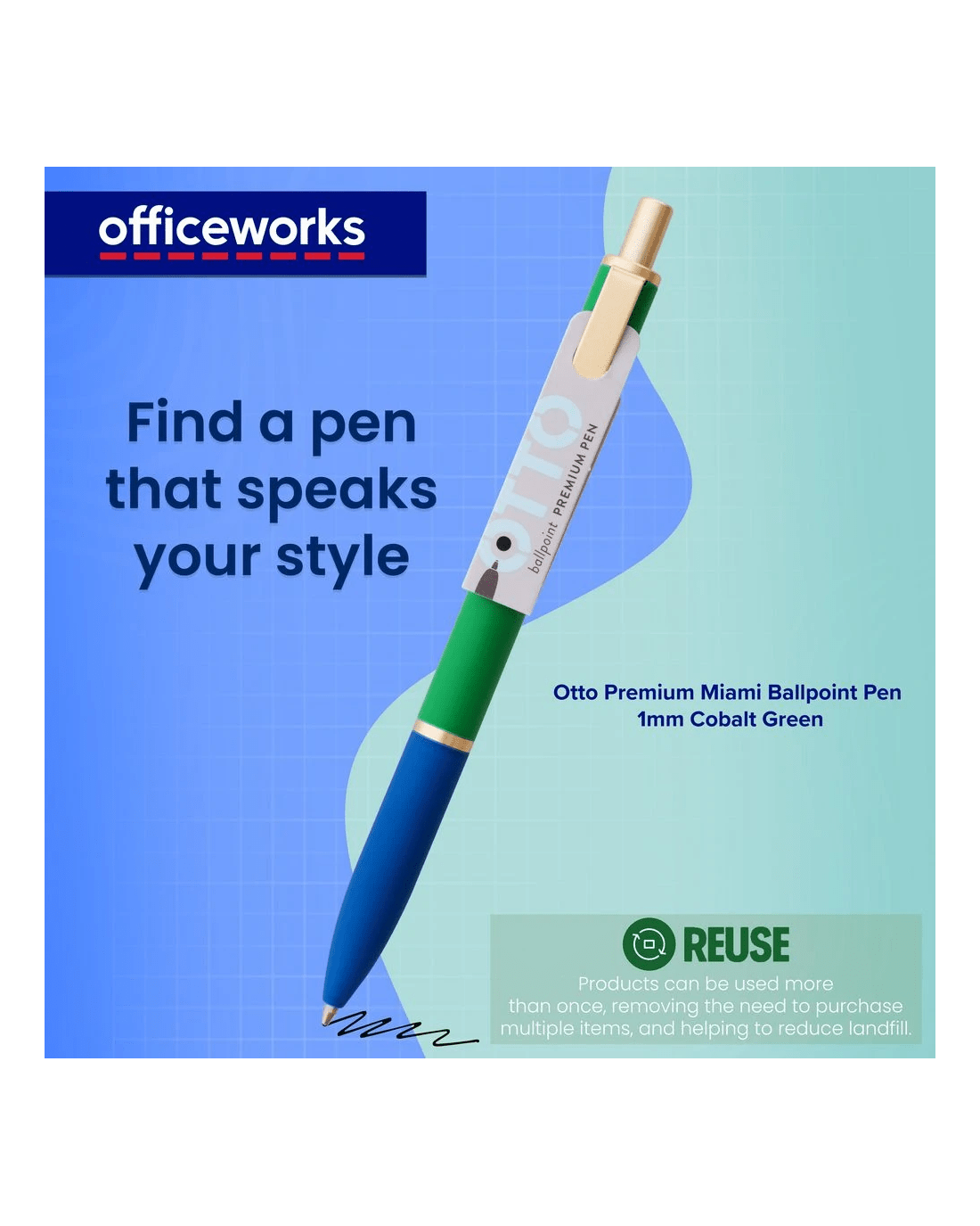 Sold by OfficeworksOtto Premium Miami Ballpoint Pen 1mm Cobalt Green