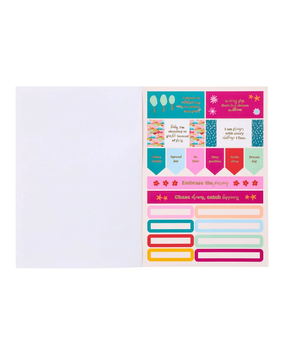 - It comes with a variety of stickers including inspirational quotes, reminders to help you plan your day and icons from Rach's artwork.