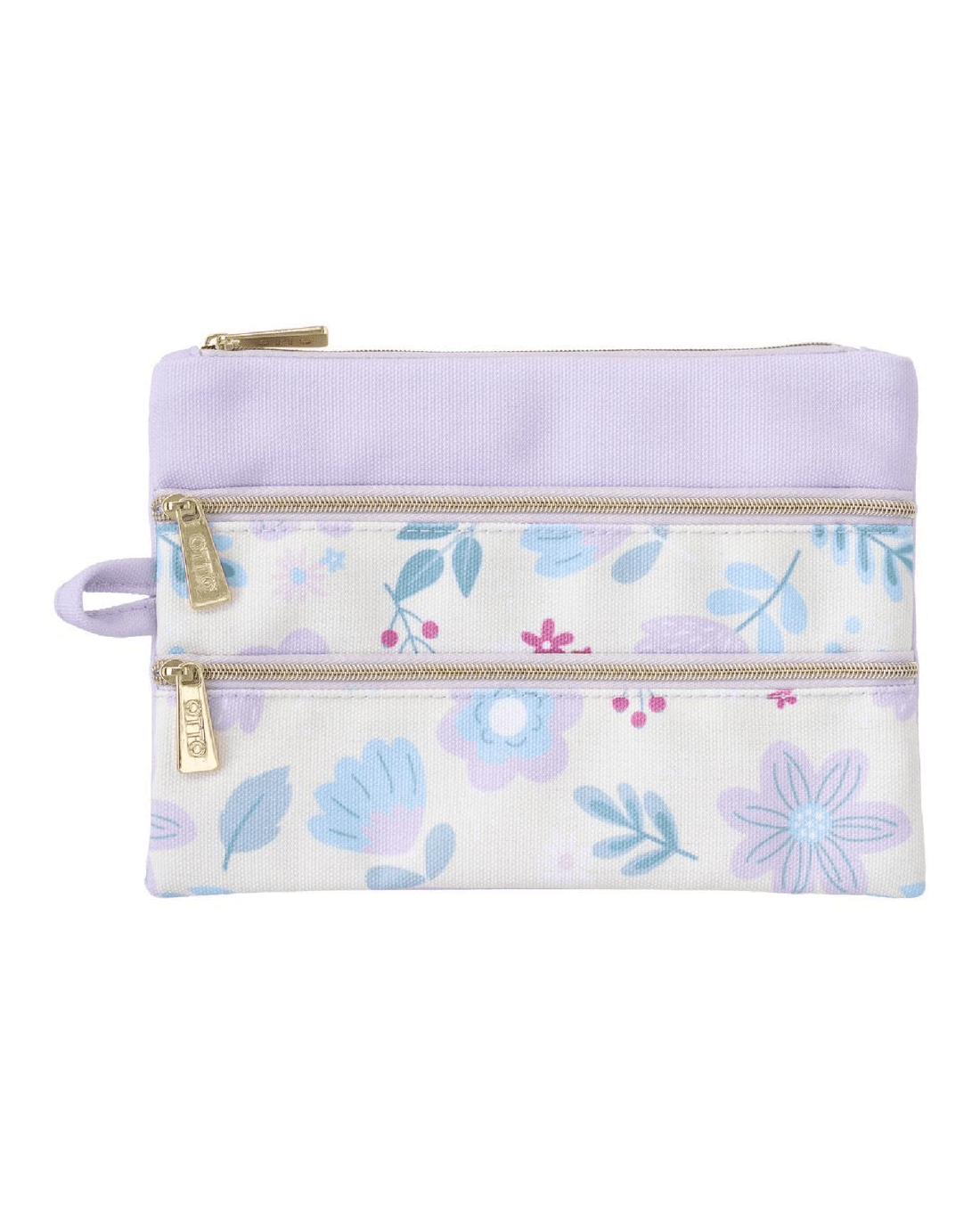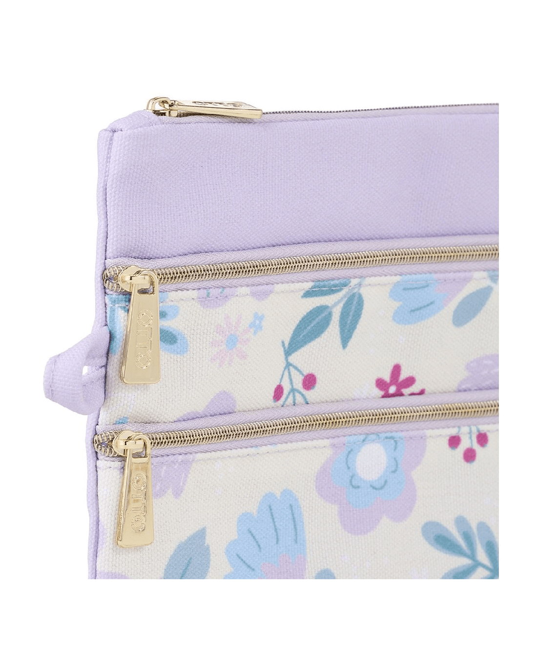 Otto Recycle Triple Zip Pencil Case Floral Purple