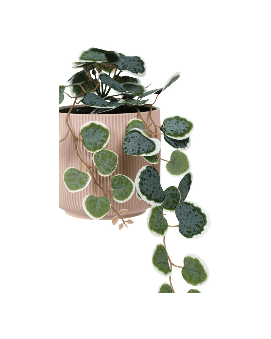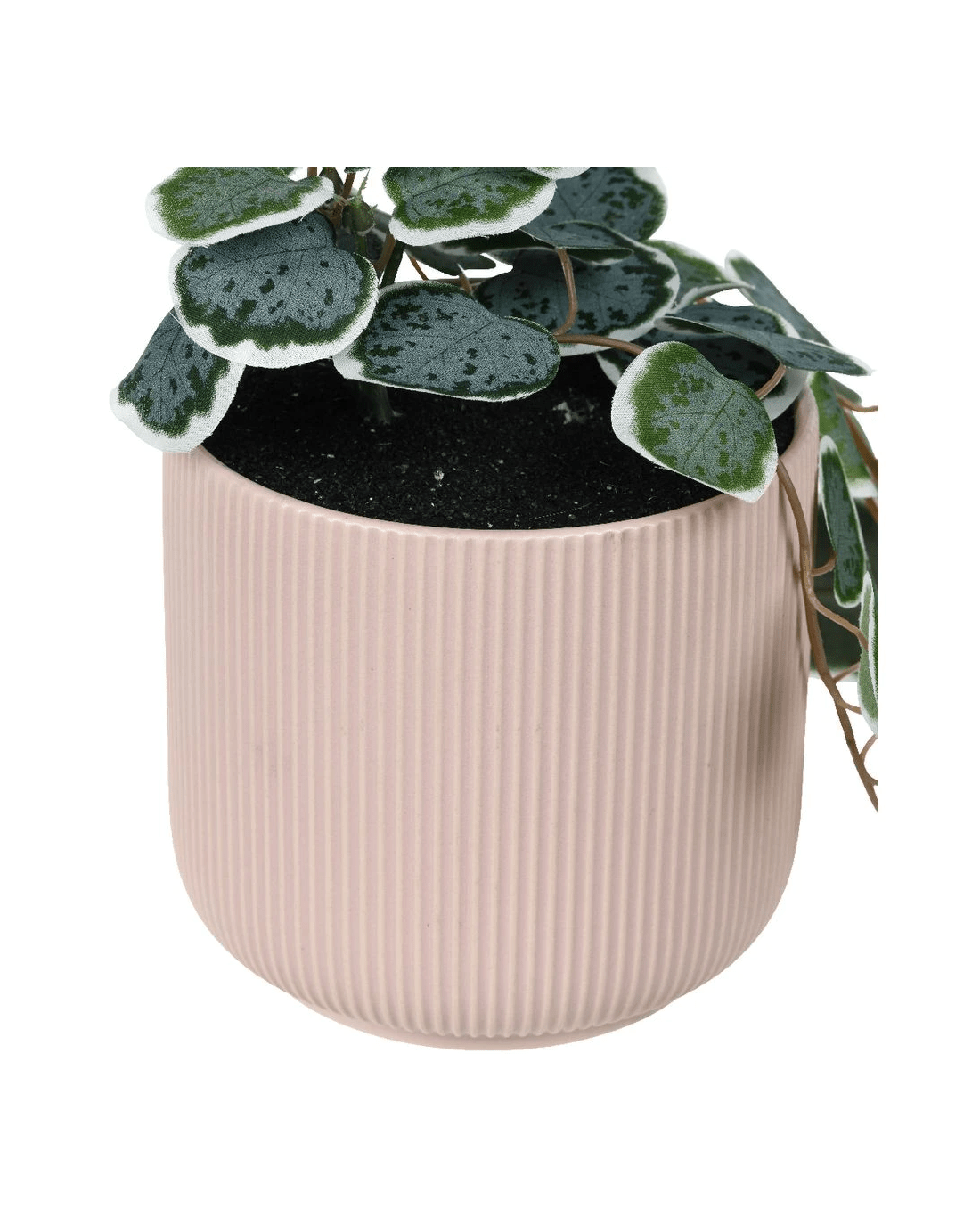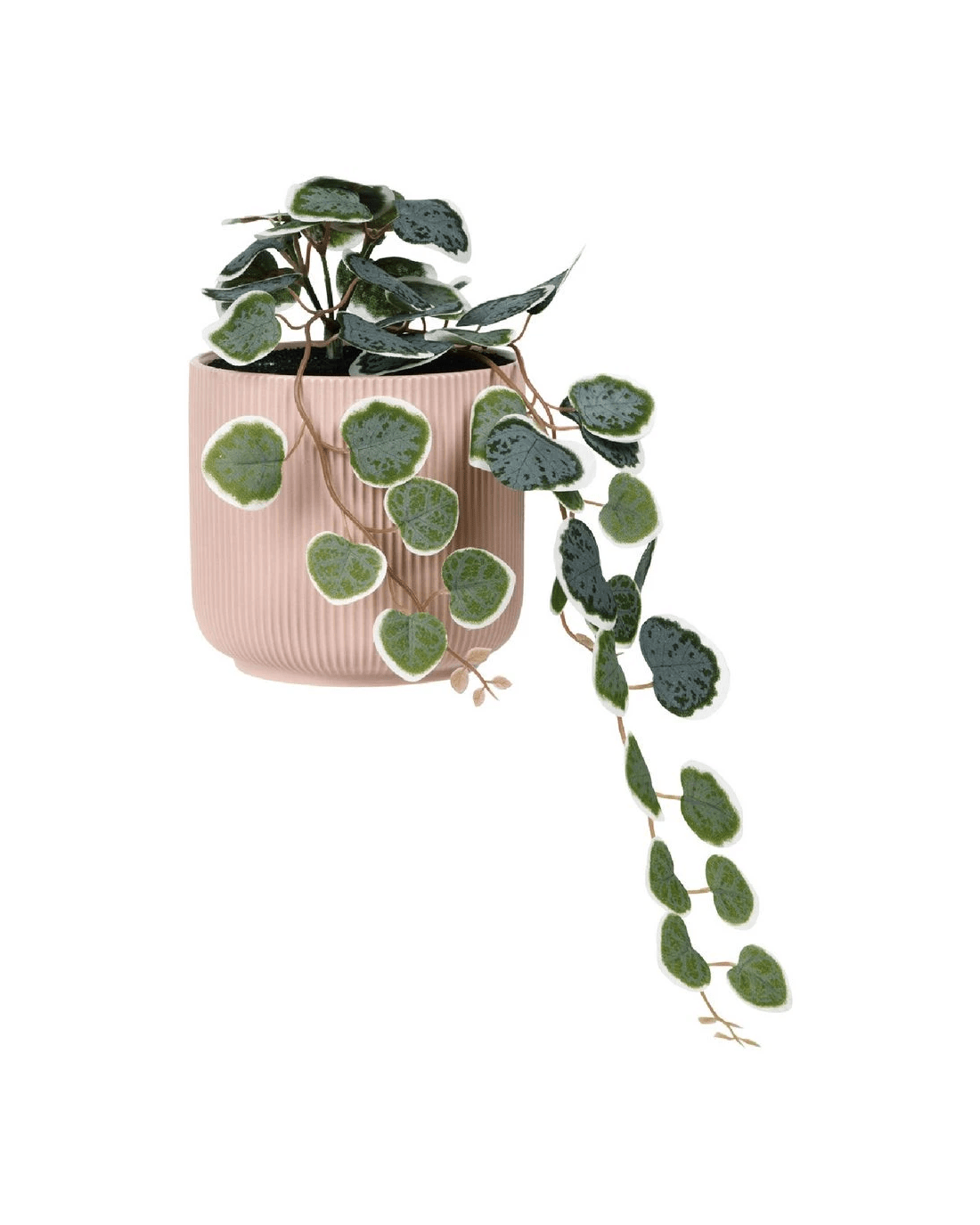 This Otto Ribbed Planter comes in a lovely pink design and includes an artificial hanging plant. It's perfect for decorating any space, from your office to your bathroom.
