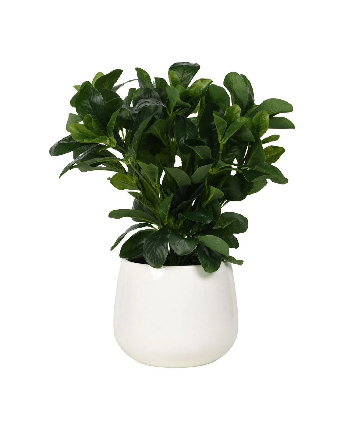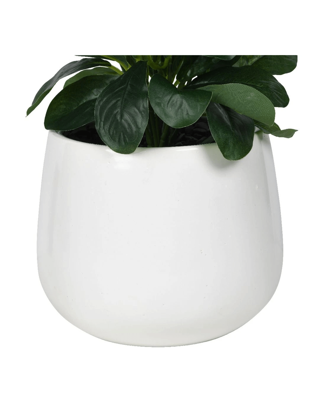 • Brighten up your space with this Otto Round White Glazed Pot and Plant.