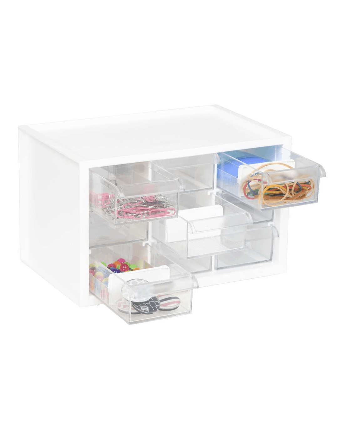 - This desktop organiser comes with 9 drawers so you'll be able to organise and store all your stationery and tech essentials.