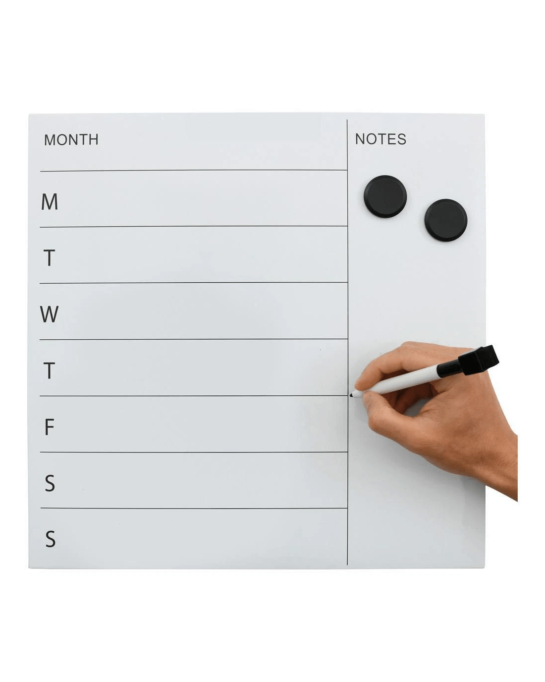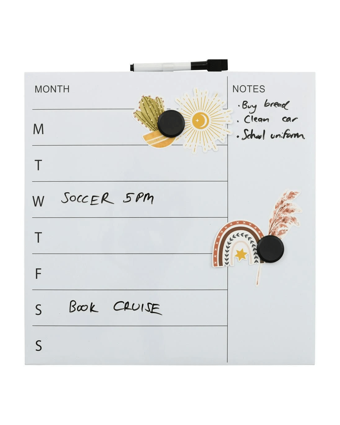- It comes with 2 x magnets and a dry erase marker.