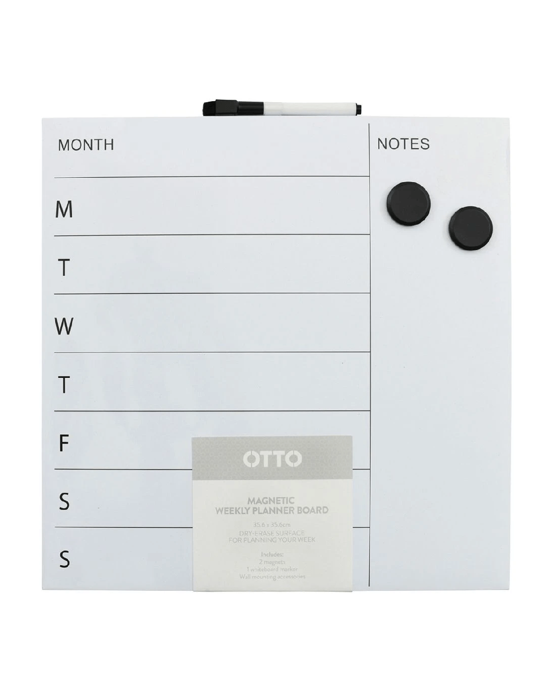 This Otto Square Weekly Planner has a frameless design with a surface measuring 356 x 356 mm. It's perfect for planning out your weeks and includes a magnetic surface as well as fixings to mount it to your wall.