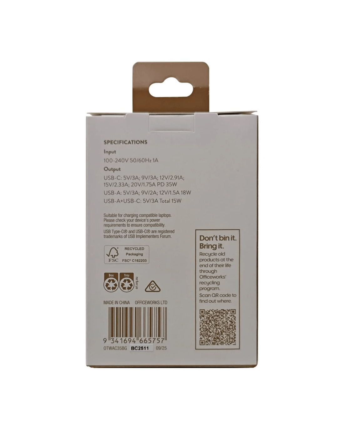 • The USB-C port provides up to 35W charging, while the USB-A provides up to 18w.