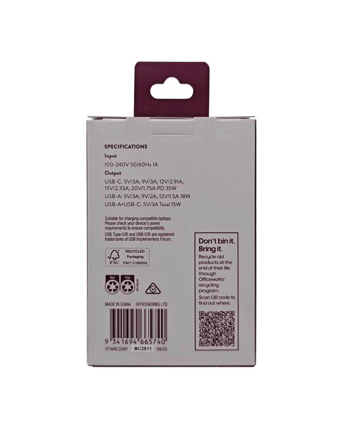 • The USB-C port provides up to 35W charging, while the USB-A provides up to 18w.