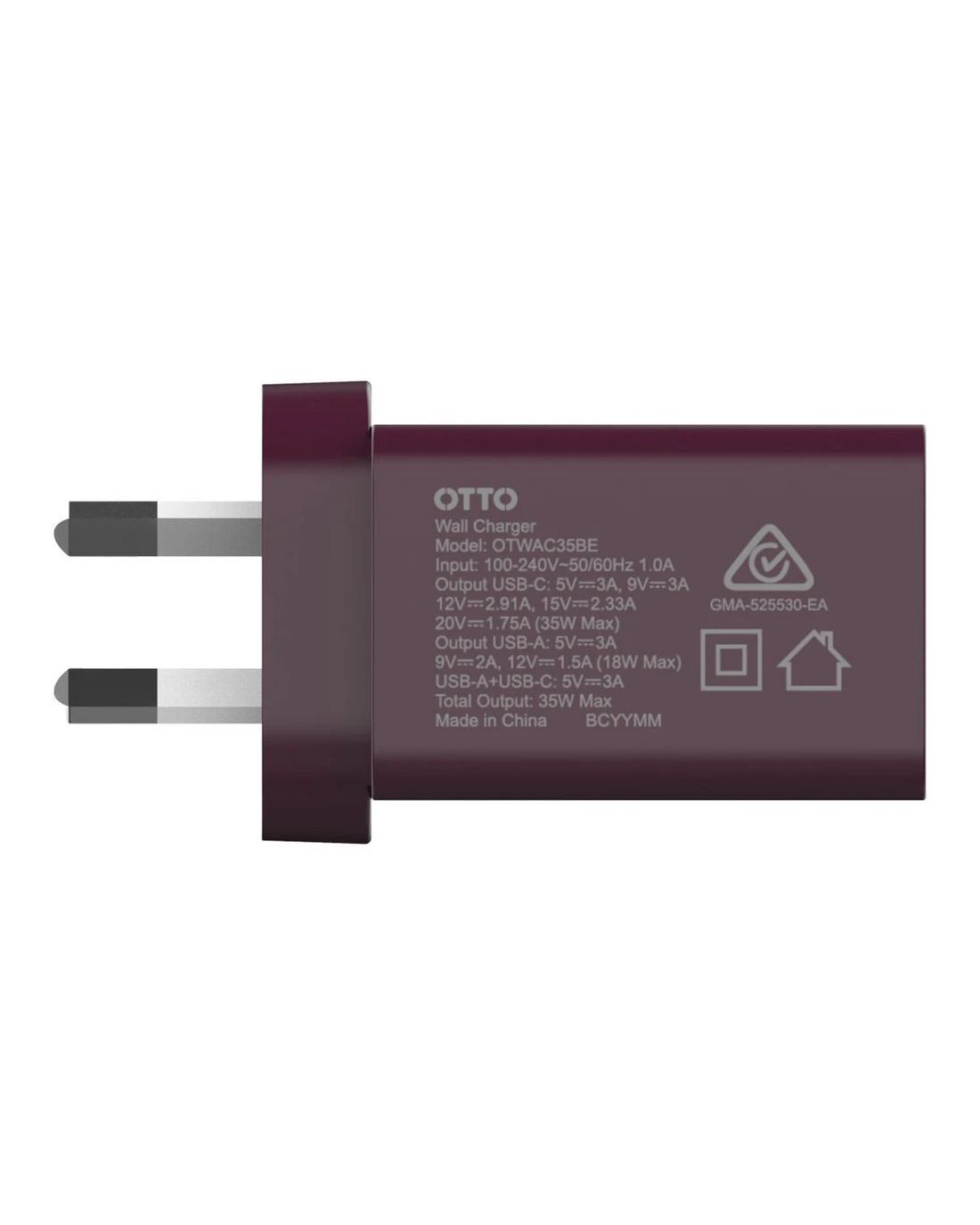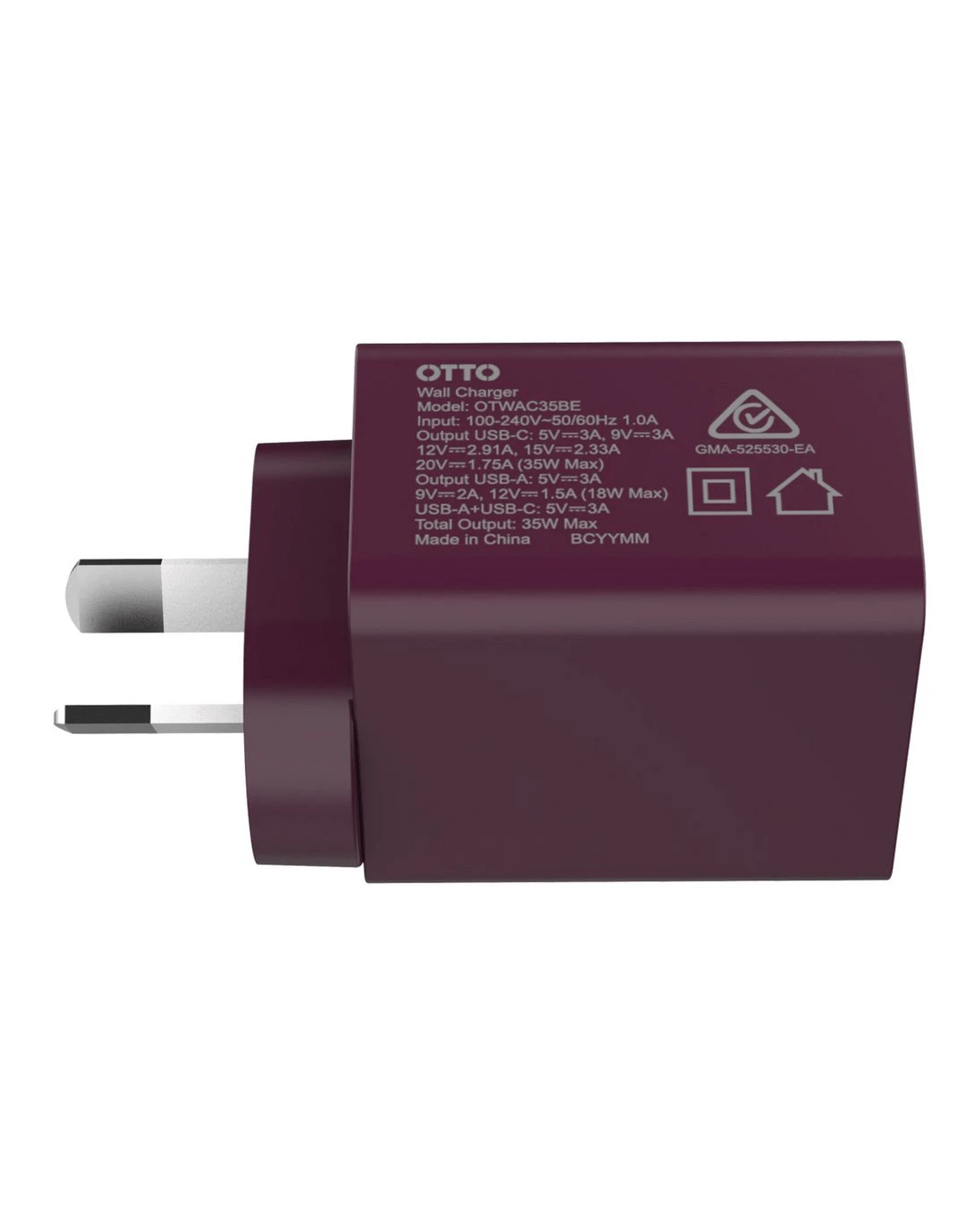 Otto USB-A and USB-C GAN Wall Charger Burgundy