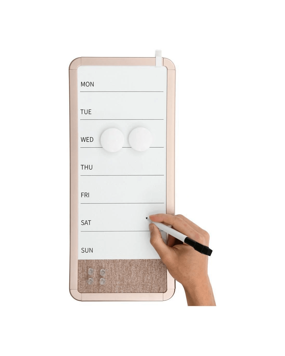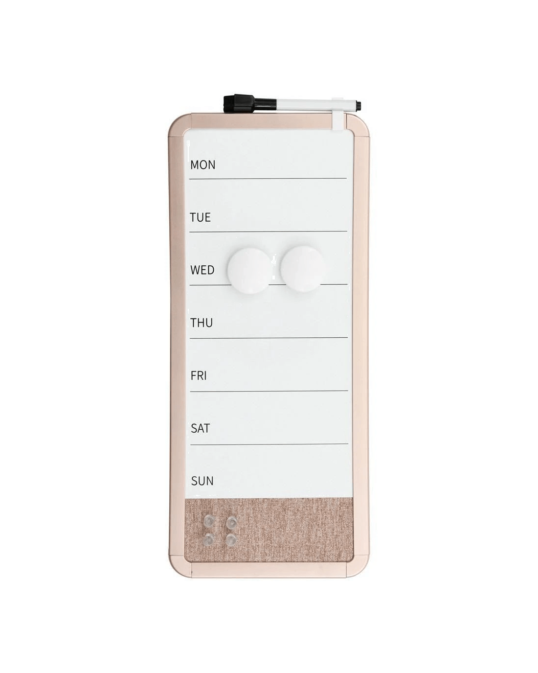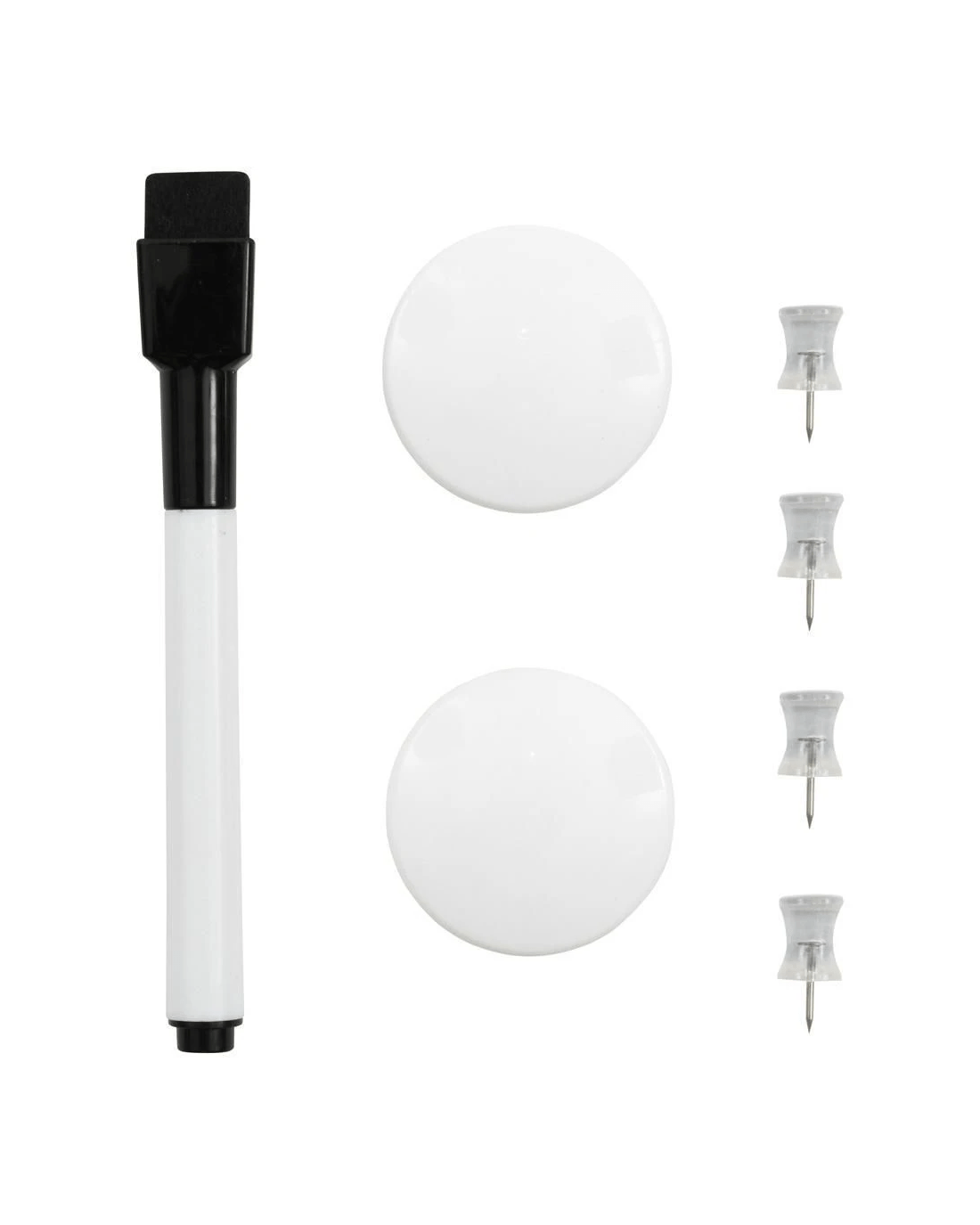 - It comes with a dry erase marker, 2 x magnets, and 4 x push pins.