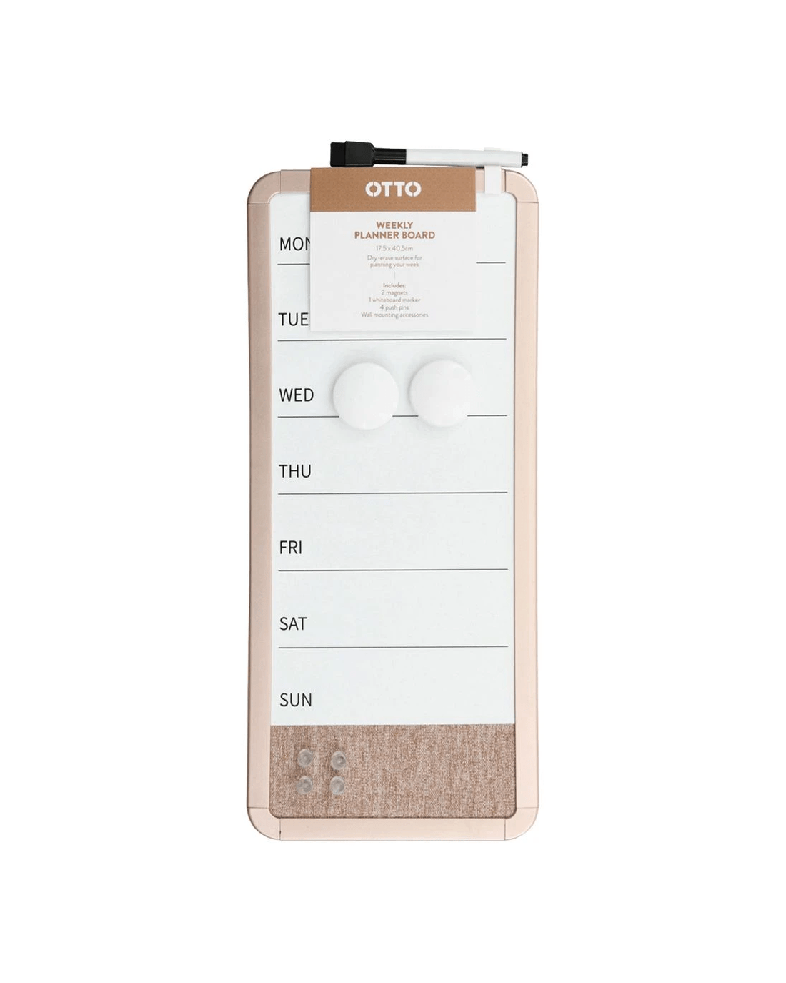 This Otto Weekly Planner Board has both a fabric surface and a dry erase surface. Use it to map out your week with ease.