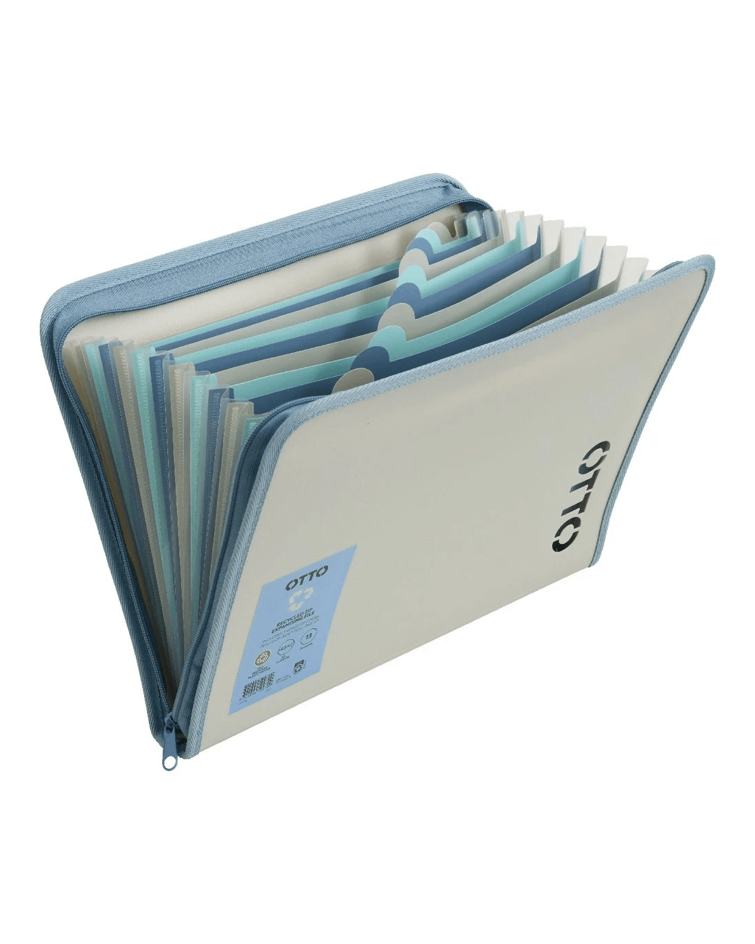 Keep your documents stored with the Otto Recycled Zip Expansion File. This file has 13 compartments so you can organise your papers into different sections and is constructed from a post consumer recycled polypropylene for an eco-friendly option.