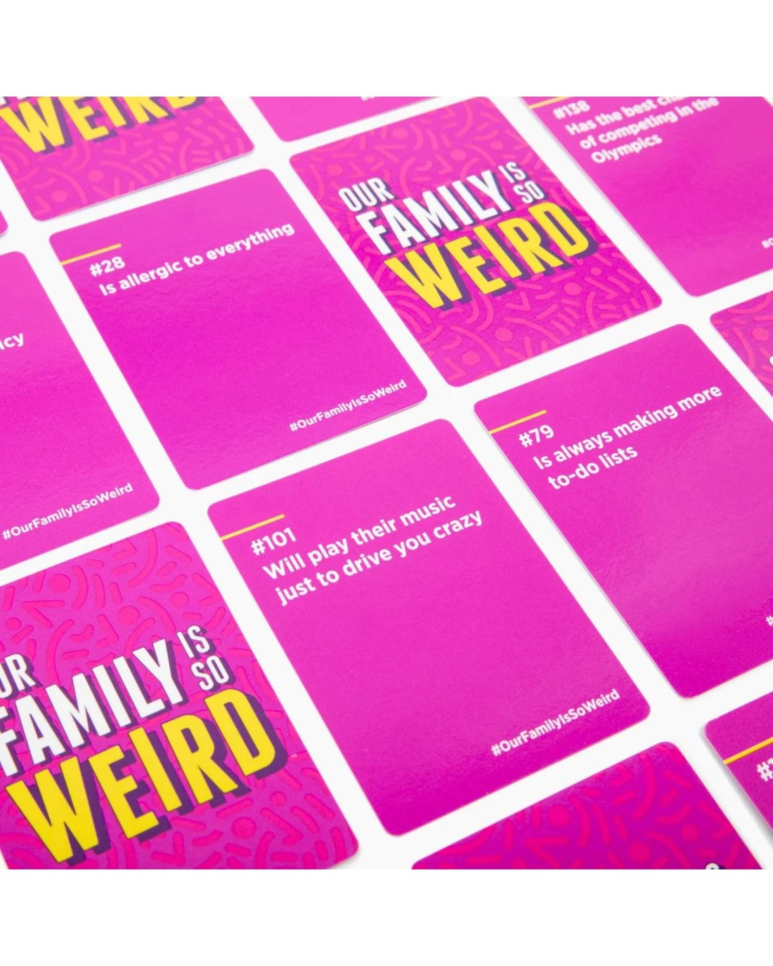 It's time to find out how weird our family is by voting for "who's most likely to..."have a completely full closet but nothing to wear" "not care about food expiration dates" and more. Great for big groups and family game nights. Ages: 14 + | Players: 3 +